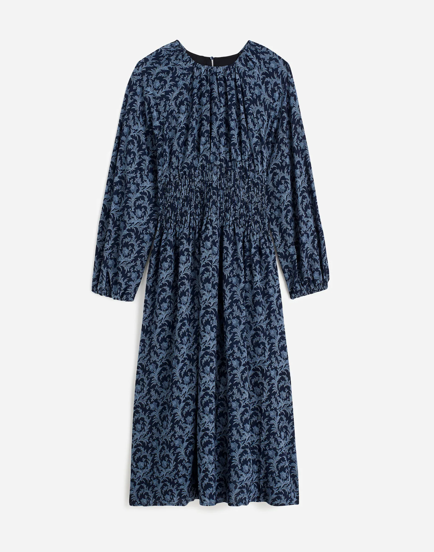 bubble sleeves and a smocked waist for a flattering fit. Its jewel neckline and fuller skirt add a touch of elegance, making it a versatile piece for any occasion.