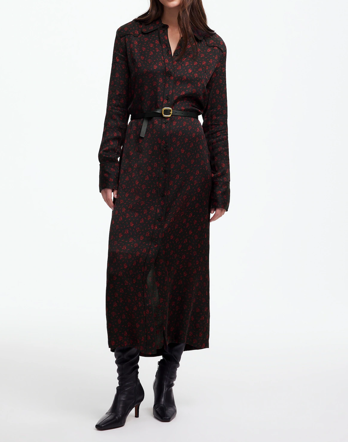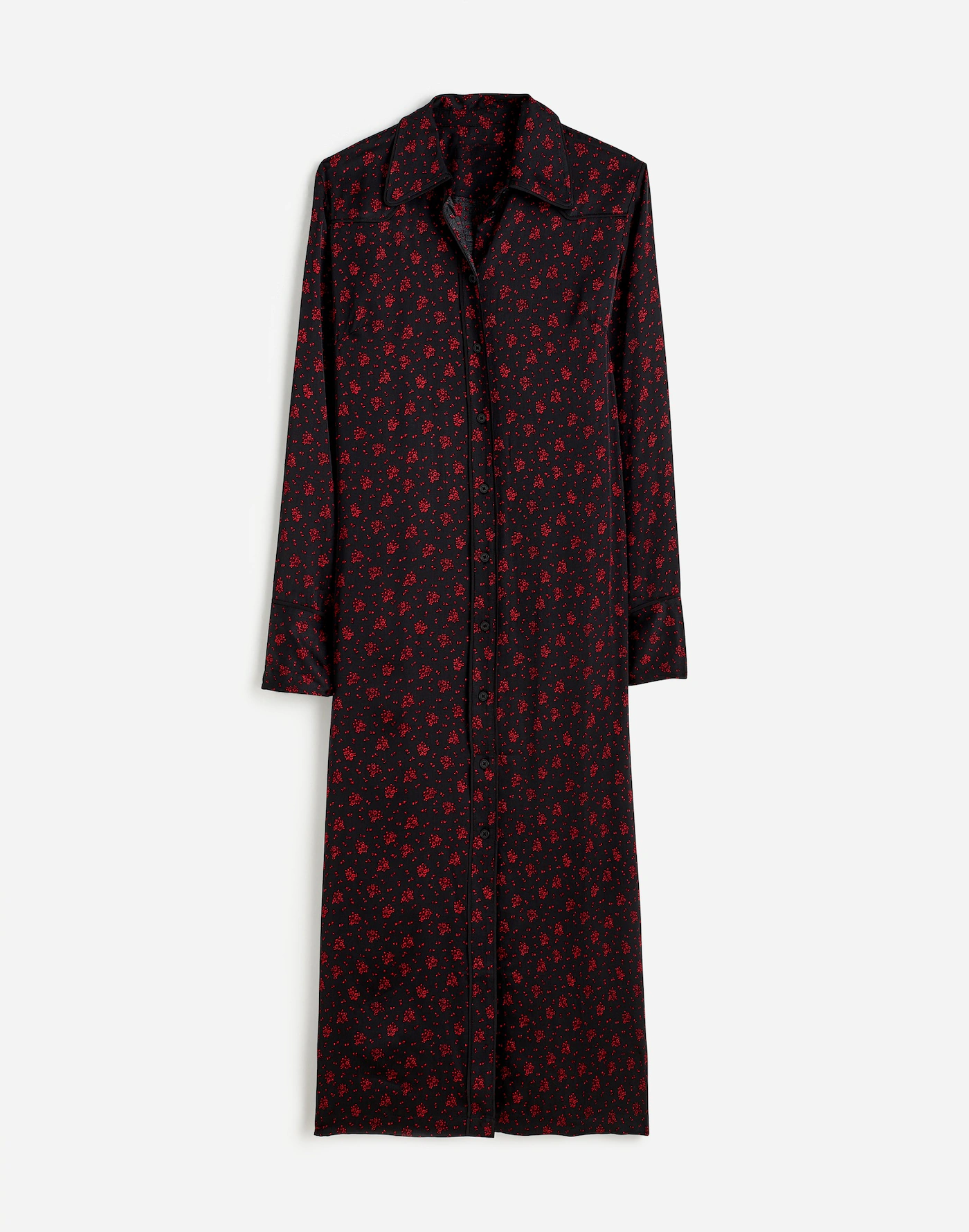 subtle touch of shine. Featuring a point collar and long sleeves, its button-front closure and body-skimming fit make it effortlessly chic for any occasion.