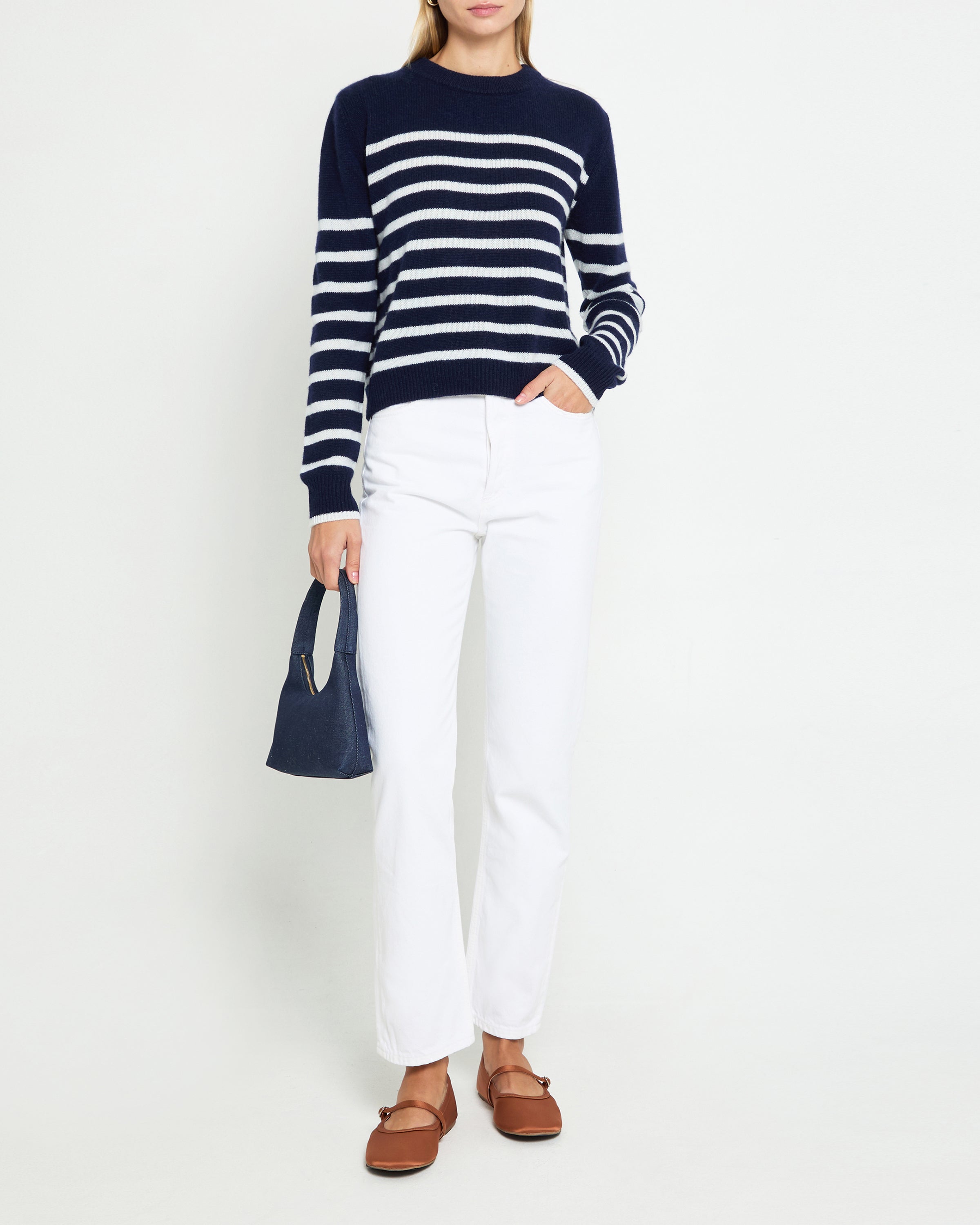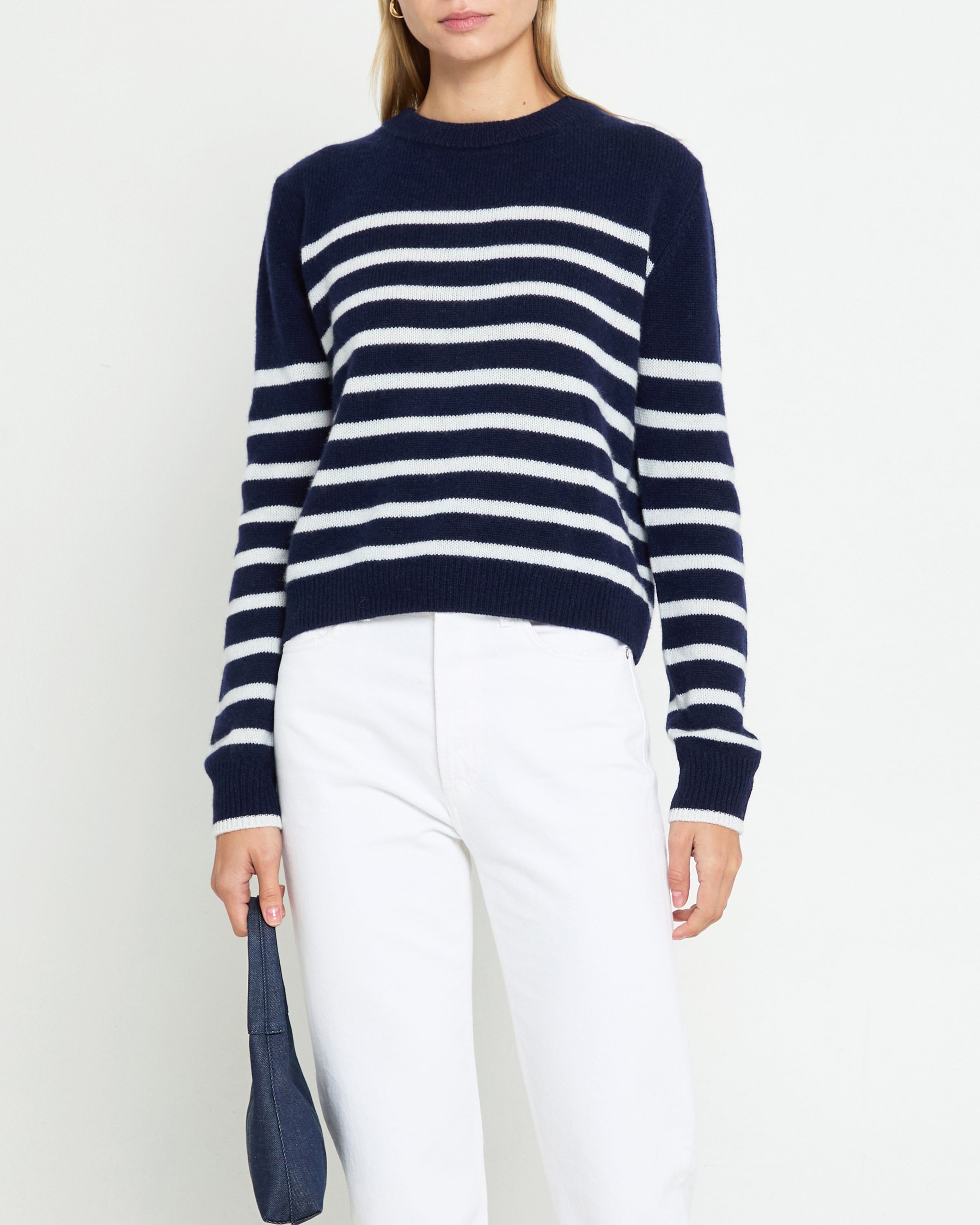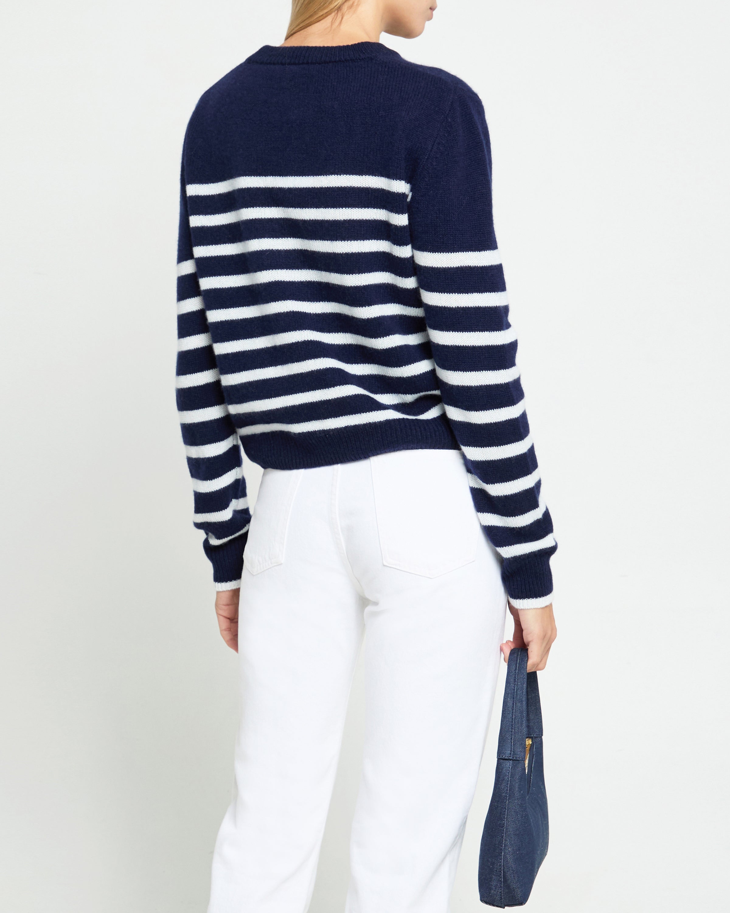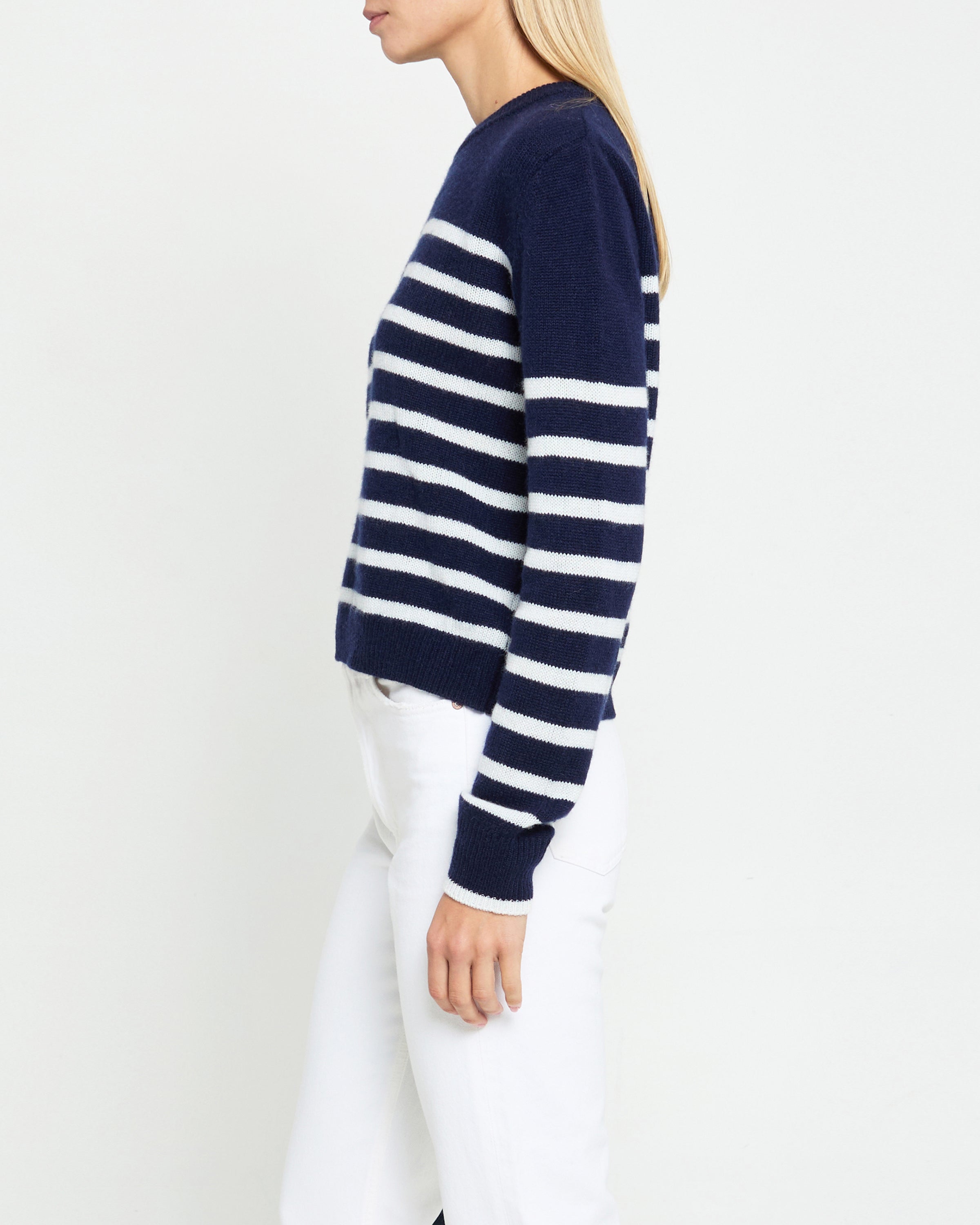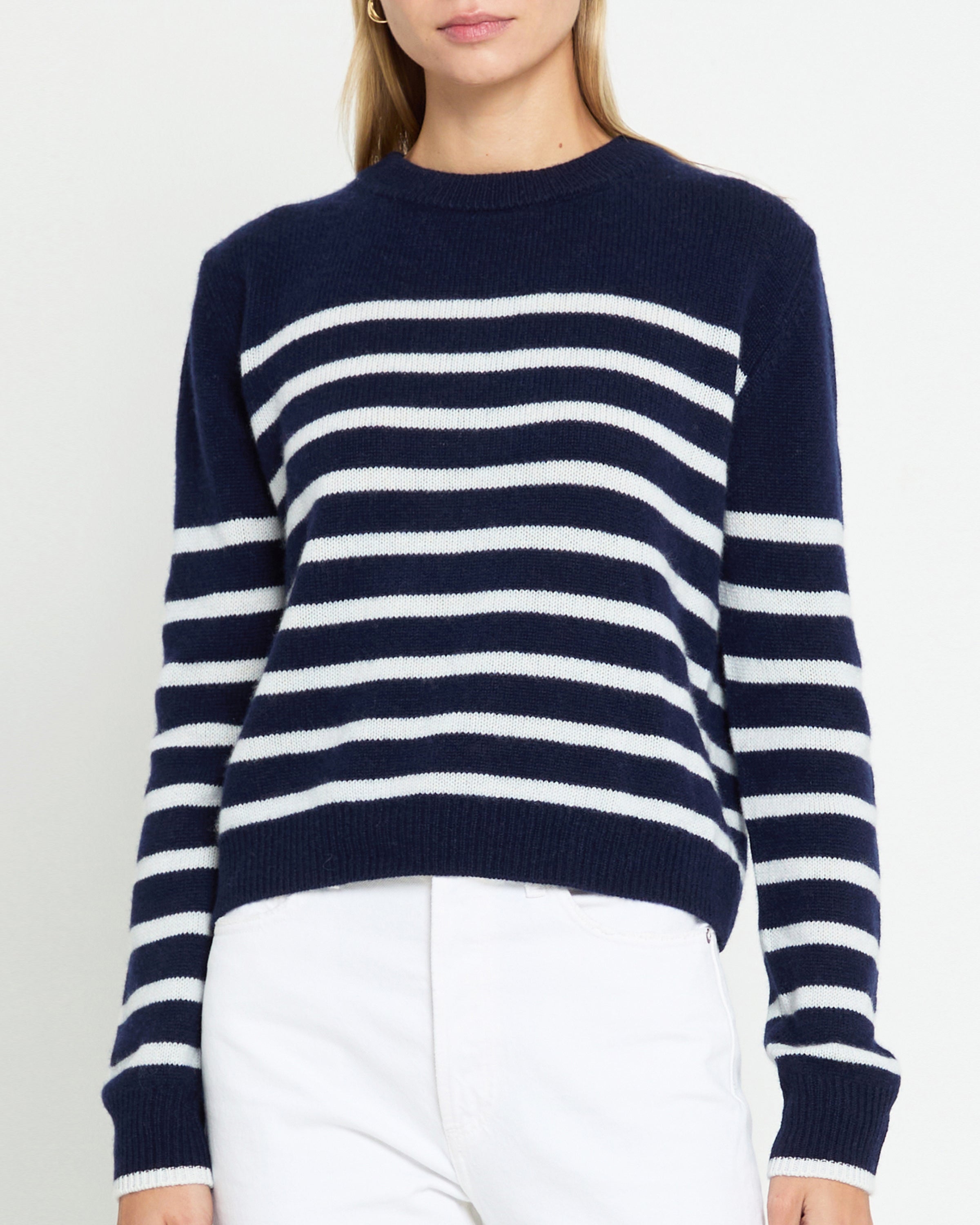 The Cashmere Sweater is crafted from luxurious cashmere, featuring stripes for timeless style. Done with a crewneck for a classic look, and to provide warmth and comfort with its soft, airy quality. Treat yourself to a timeless style perfect for any season.