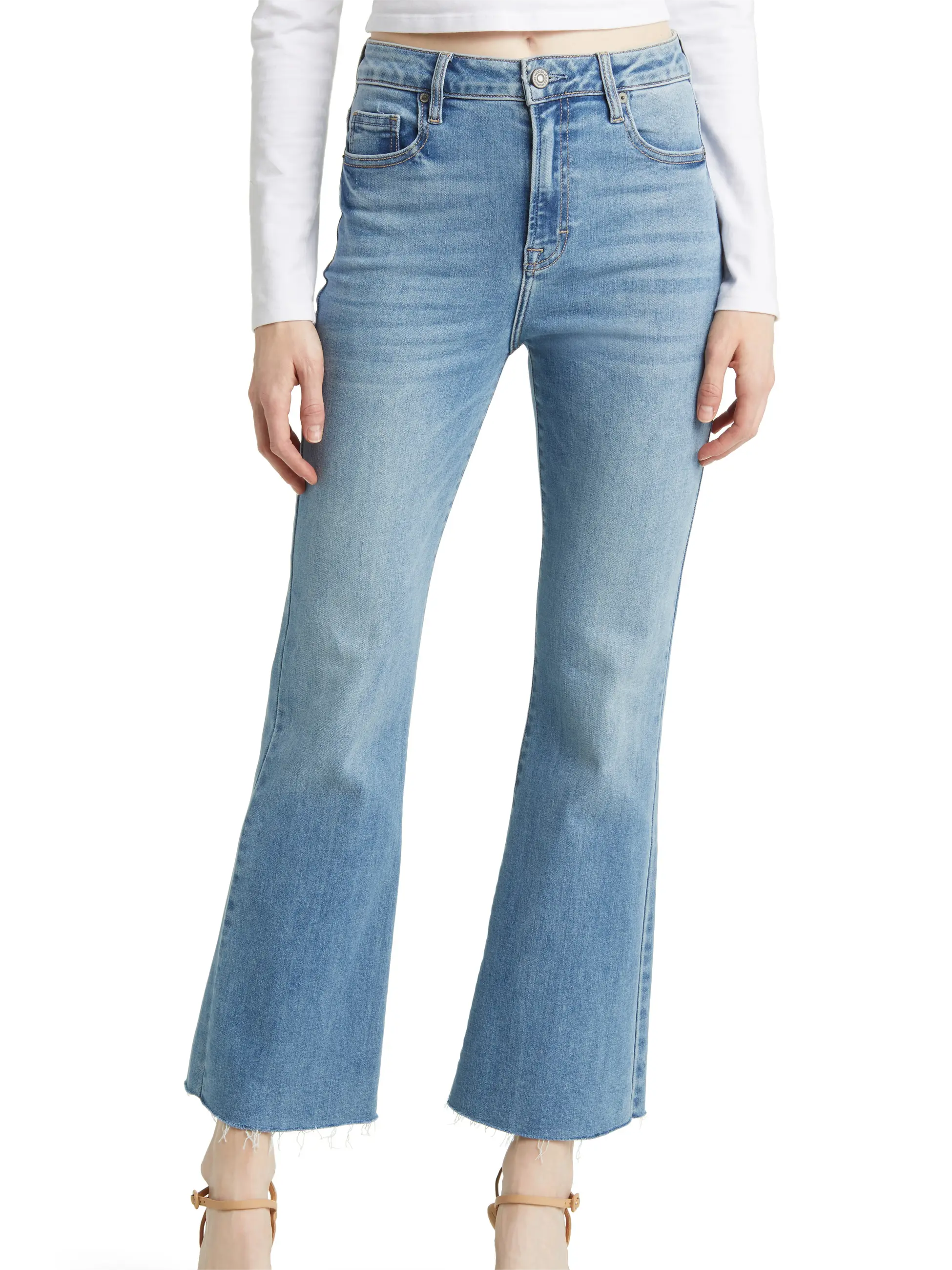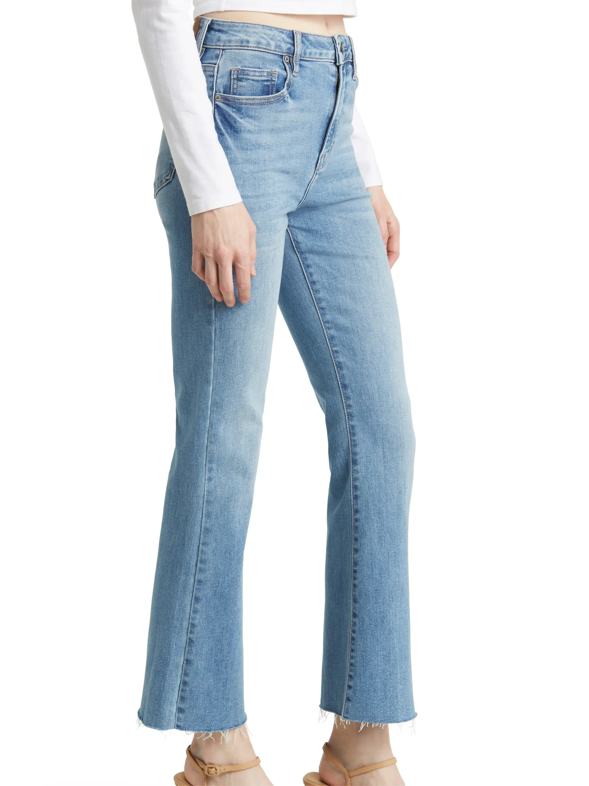Keep it casual and cool in these bootcut jeans with fraying raw hems that you'll want to wear on repeat all week long.