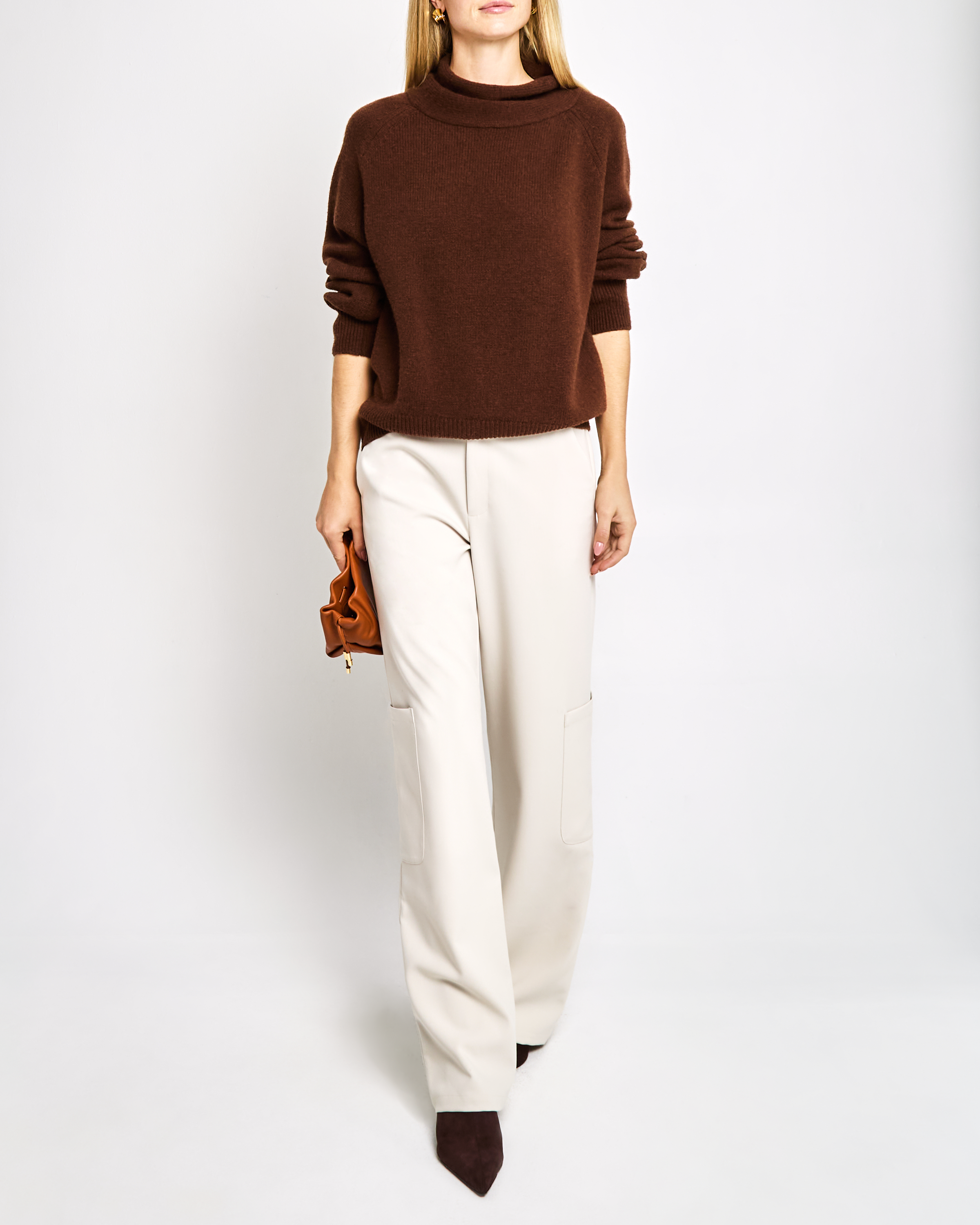 Experience elevated comfort with the sweater. Made from cozy 100% Merino wool, this sweater offers a relaxed and easy fit, while the cowl neck adds a touch of sophistication. Its versatile hue makes it perfect for any occasion.