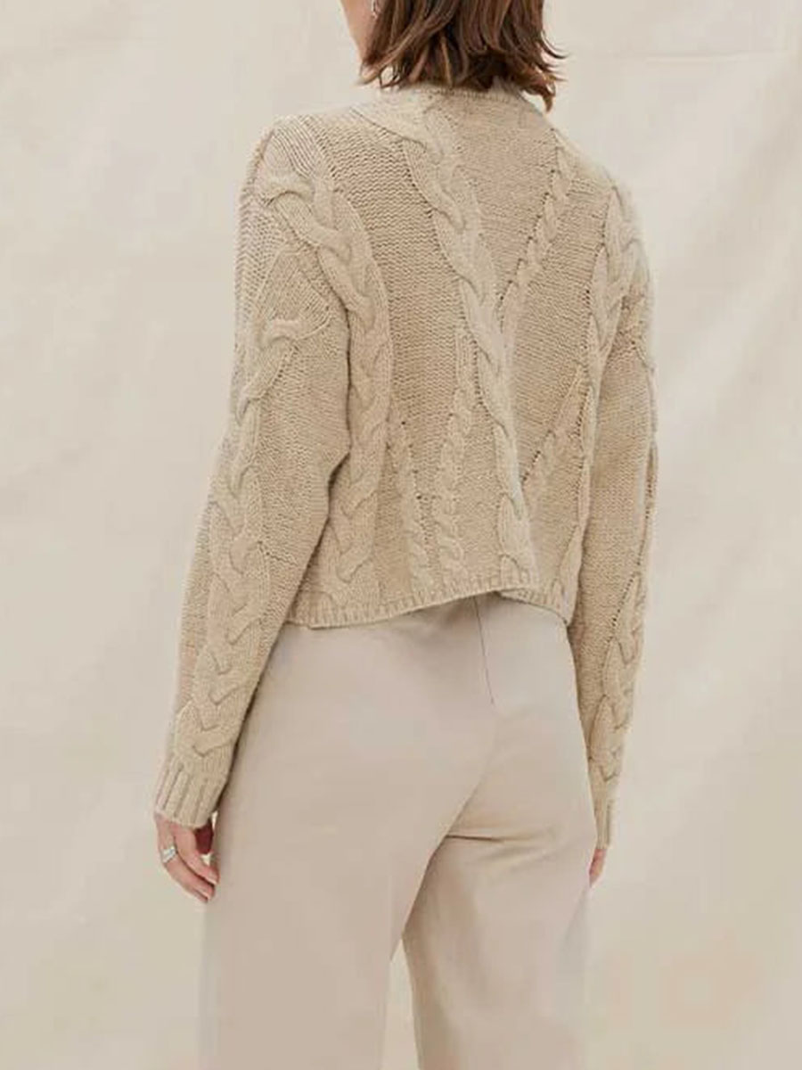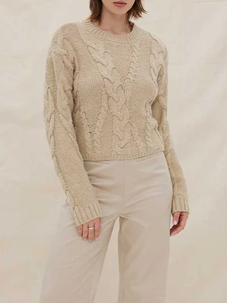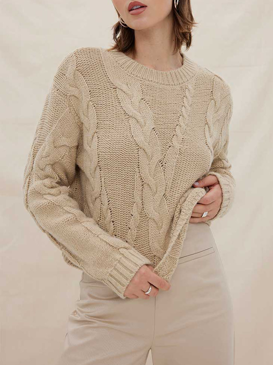 The Cable Sweater features a relaxed fit silhouette. The Sweater is designed with a soft cosy knit fabrication perfect for those winter days and nights.