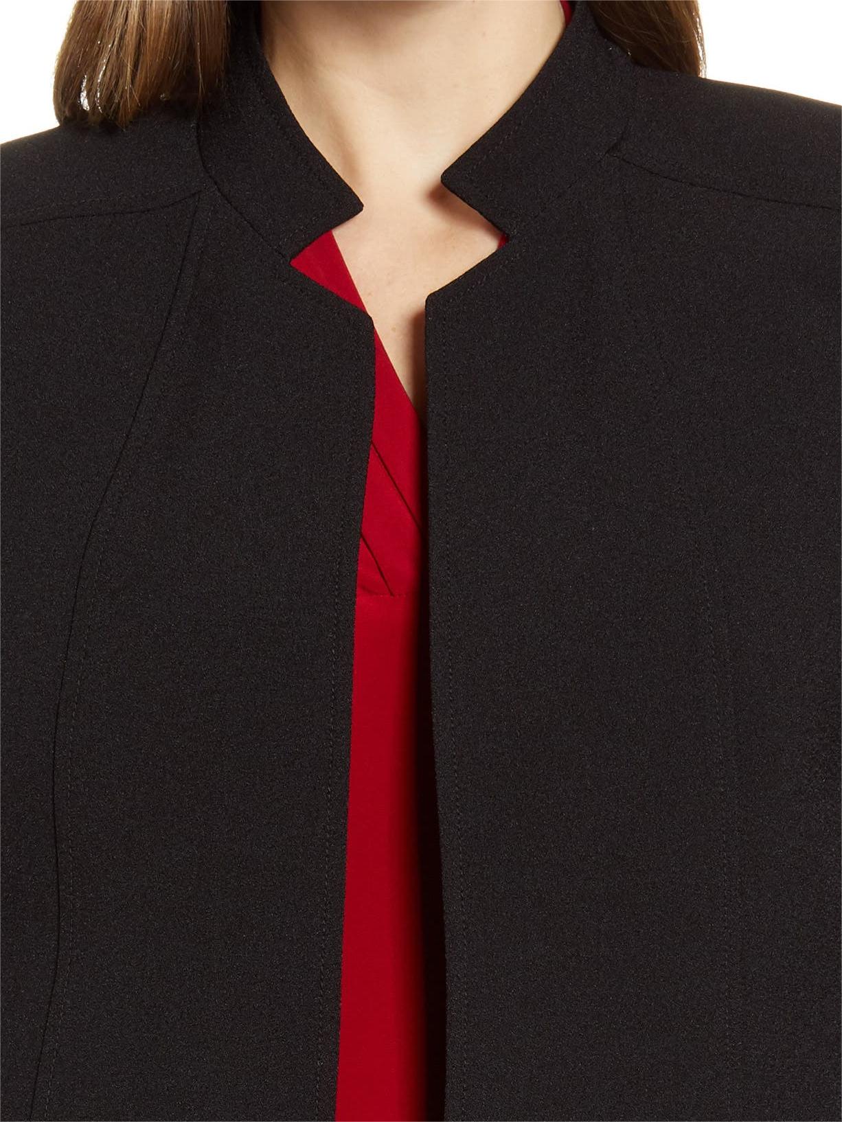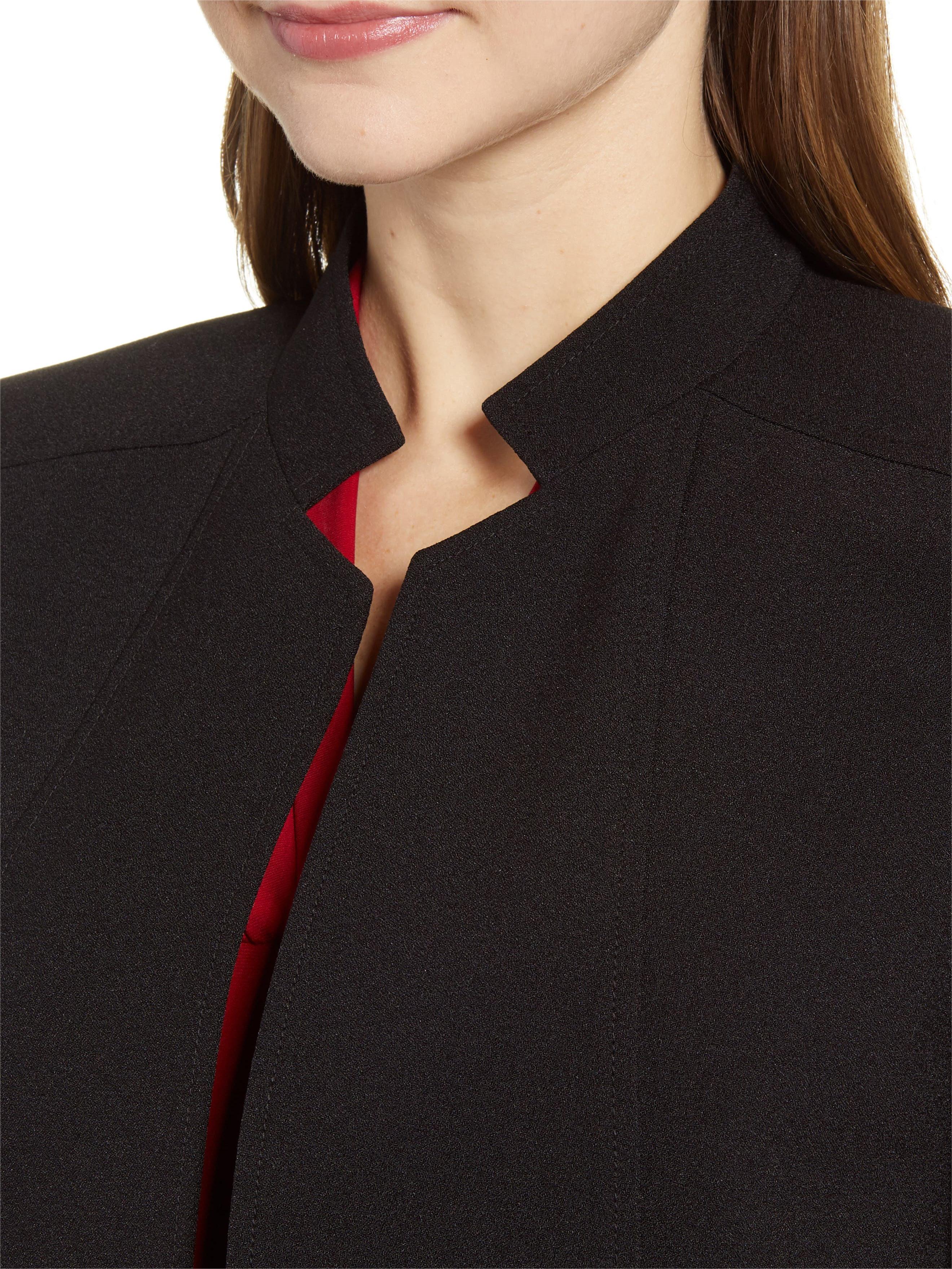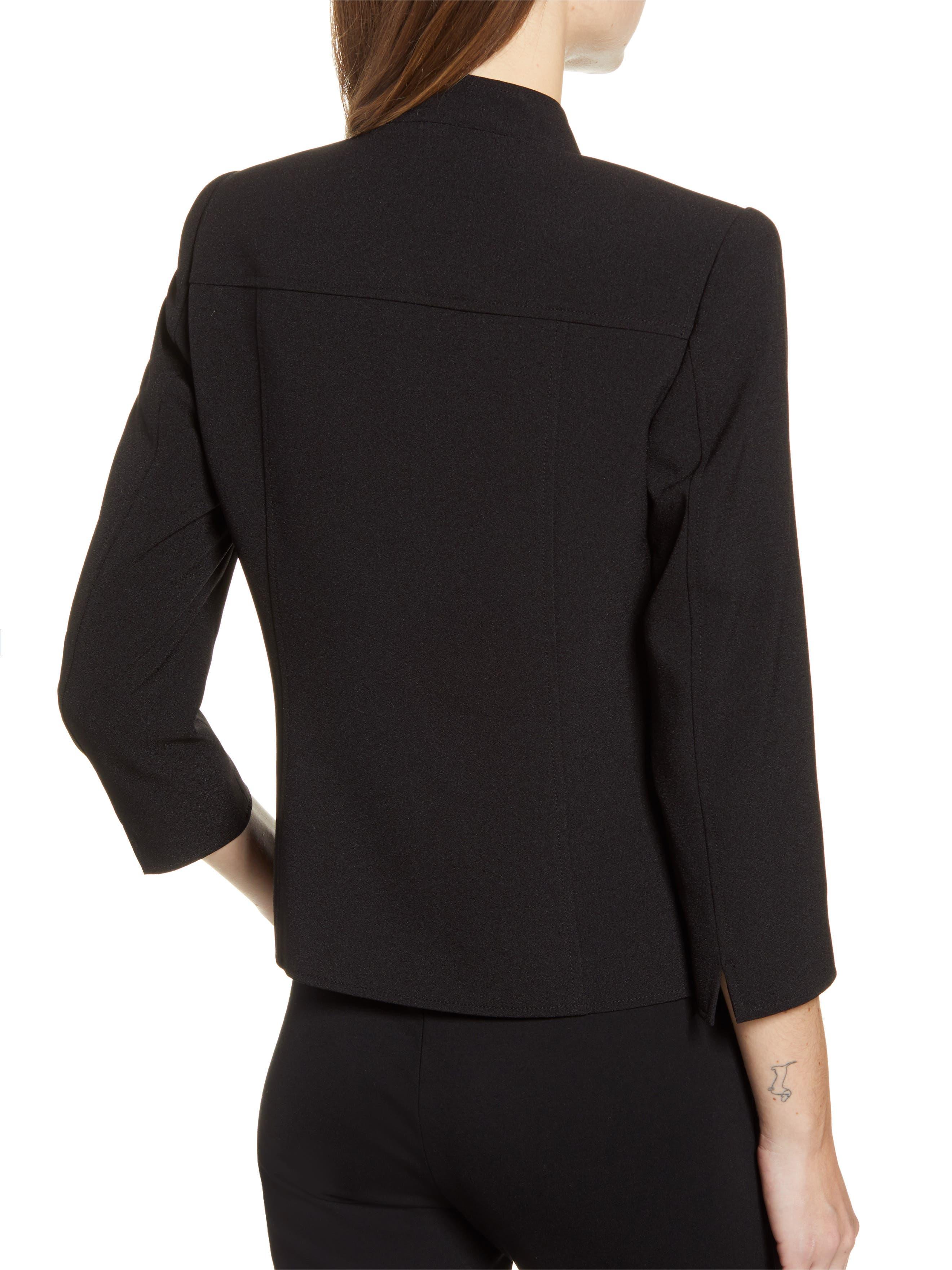 Cut from smooth crepe, this notch-collar jacket features a versatile open front.