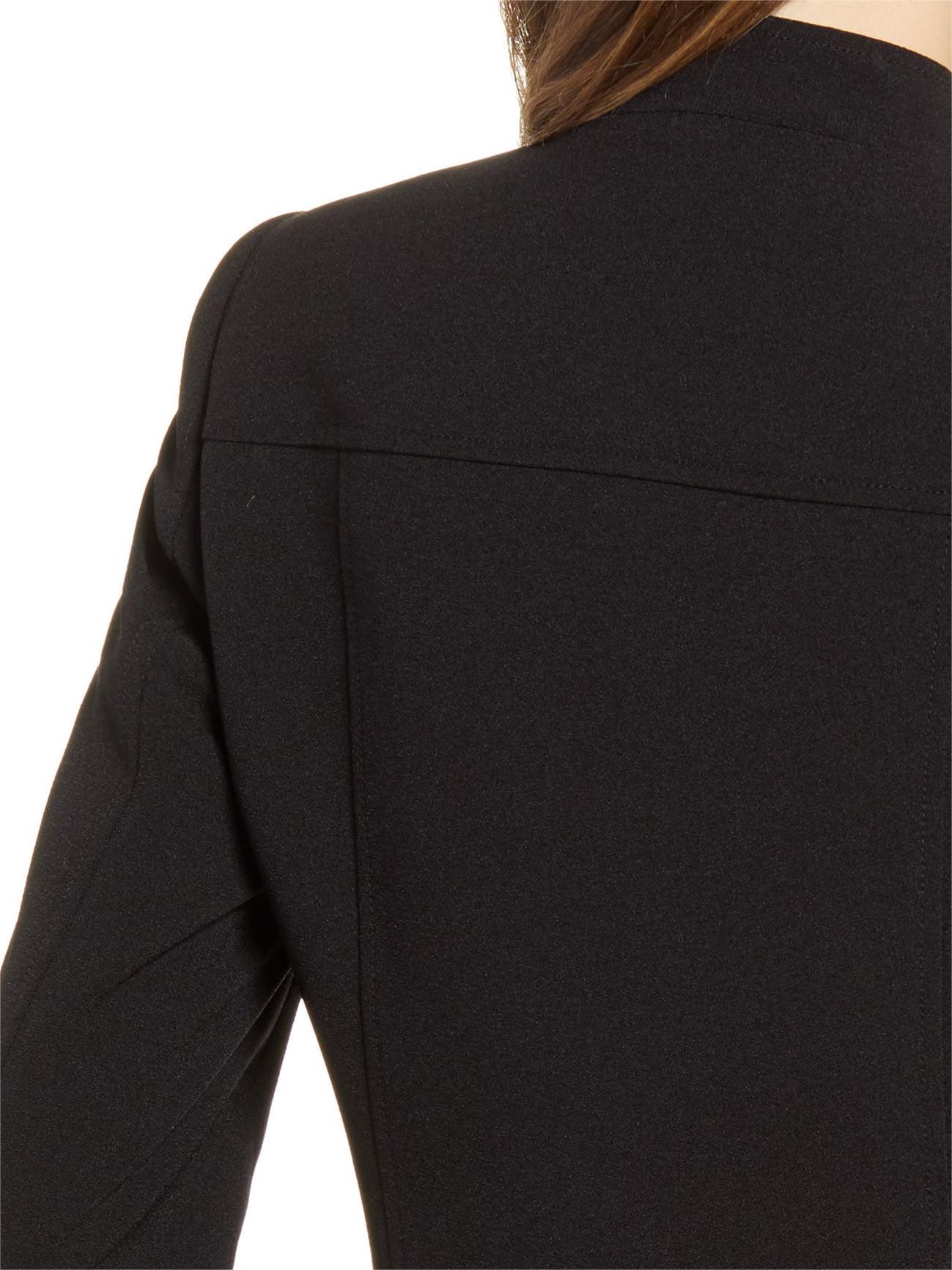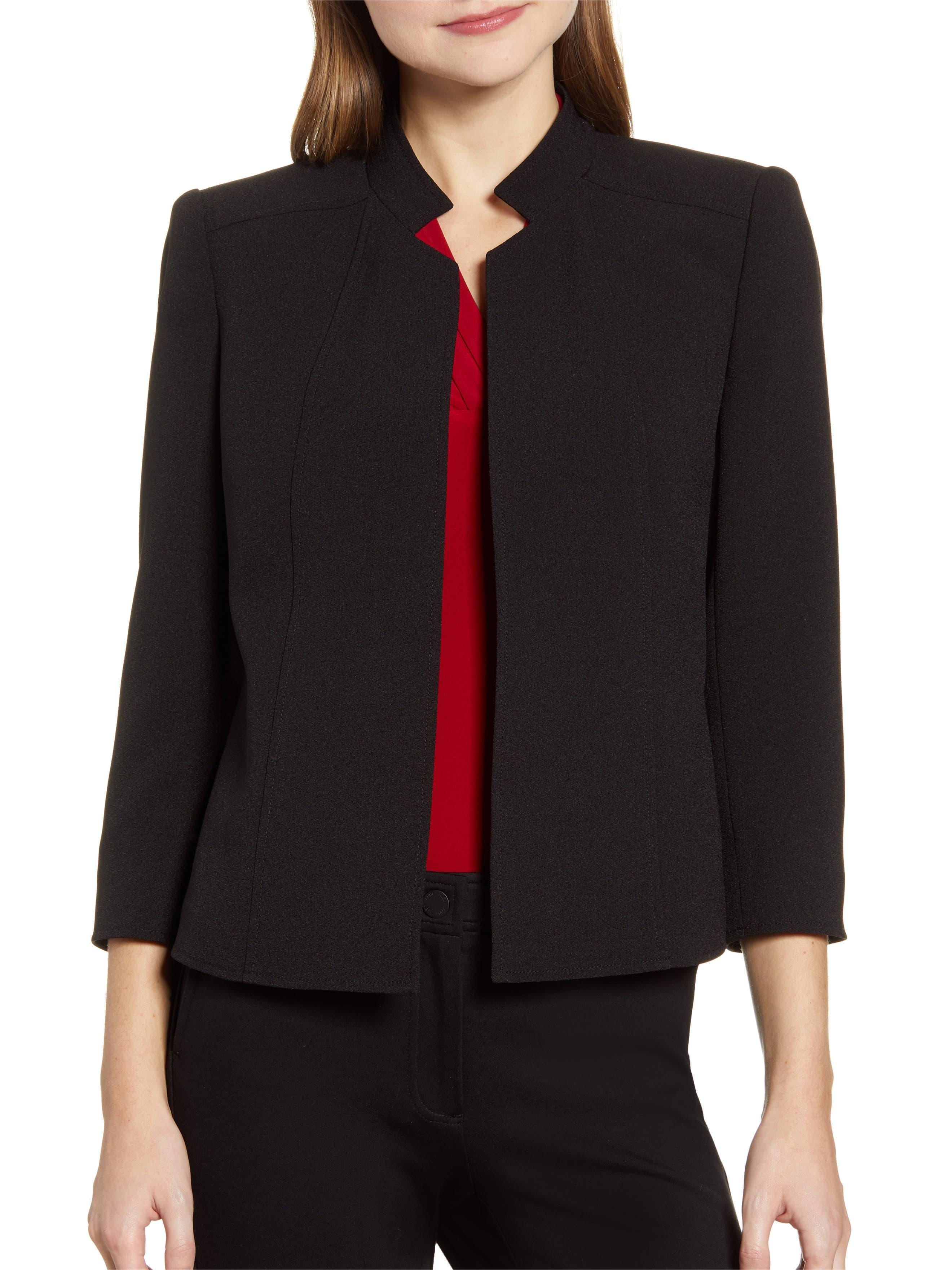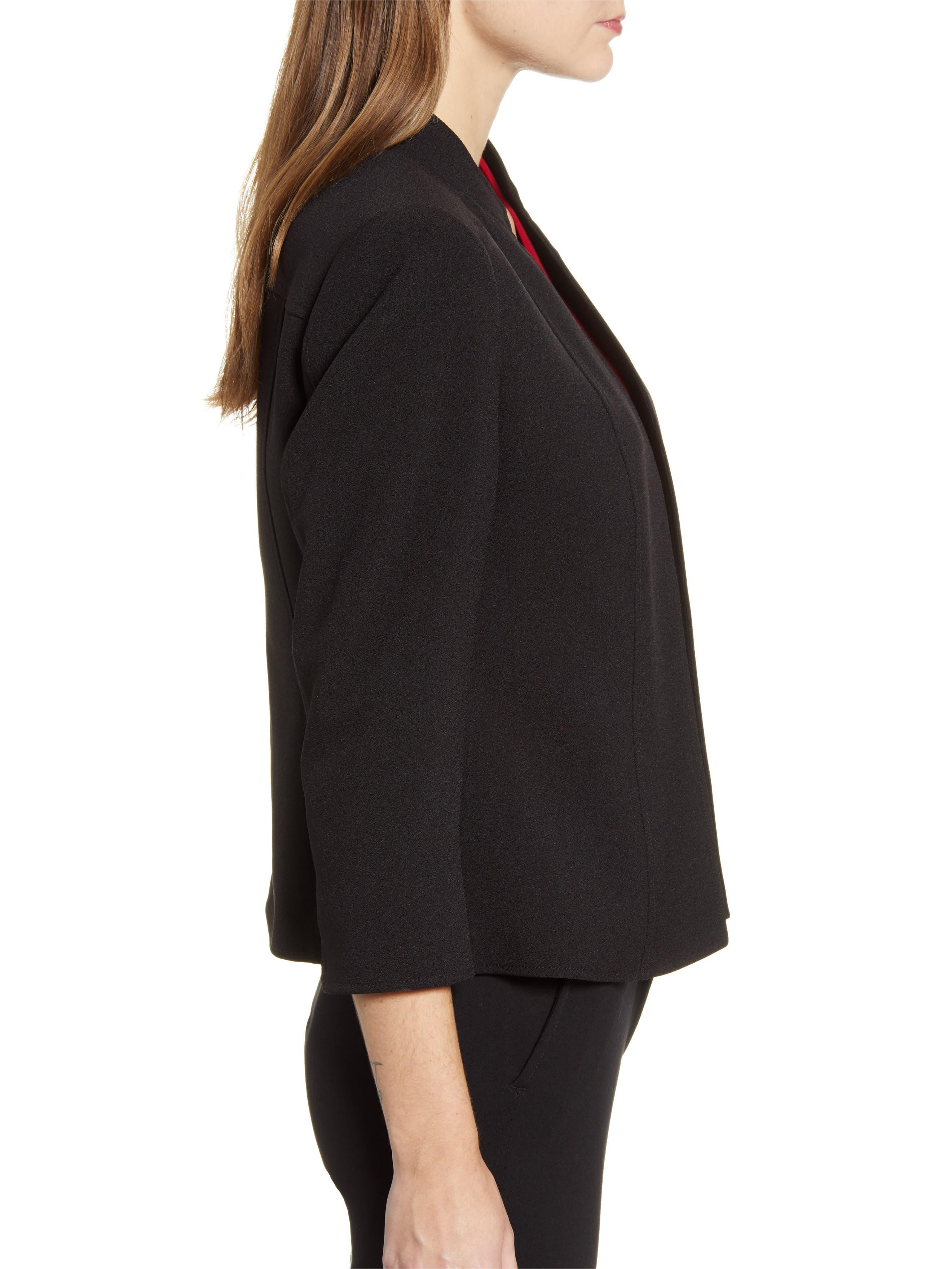 Cut from smooth crepe, this notch-collar jacket features a versatile open front.