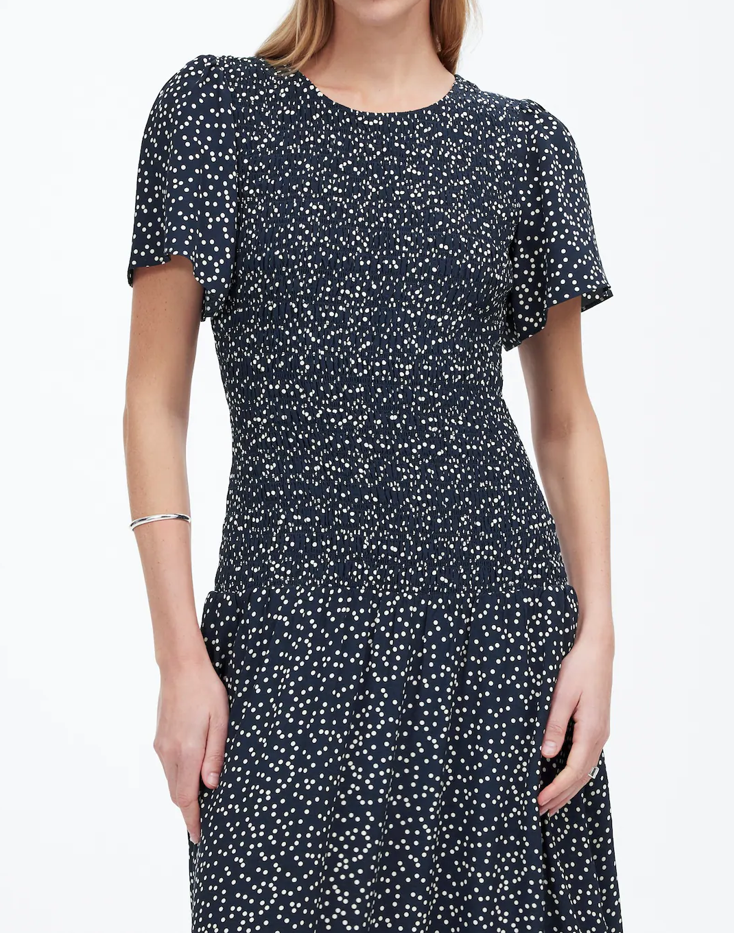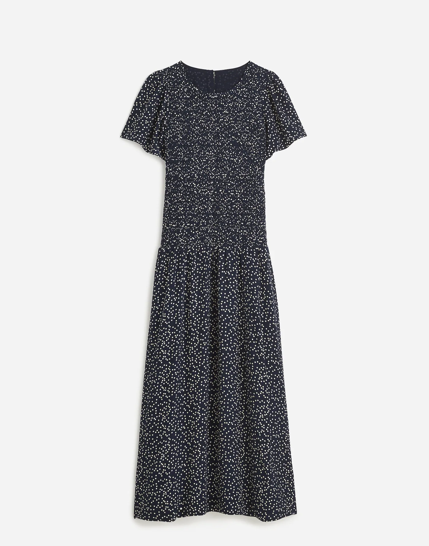 dress with a fully smocked bodice and short flutter sleeves. The flowy skirt adds effortless charm, making it a versatile choice for any occasion.
