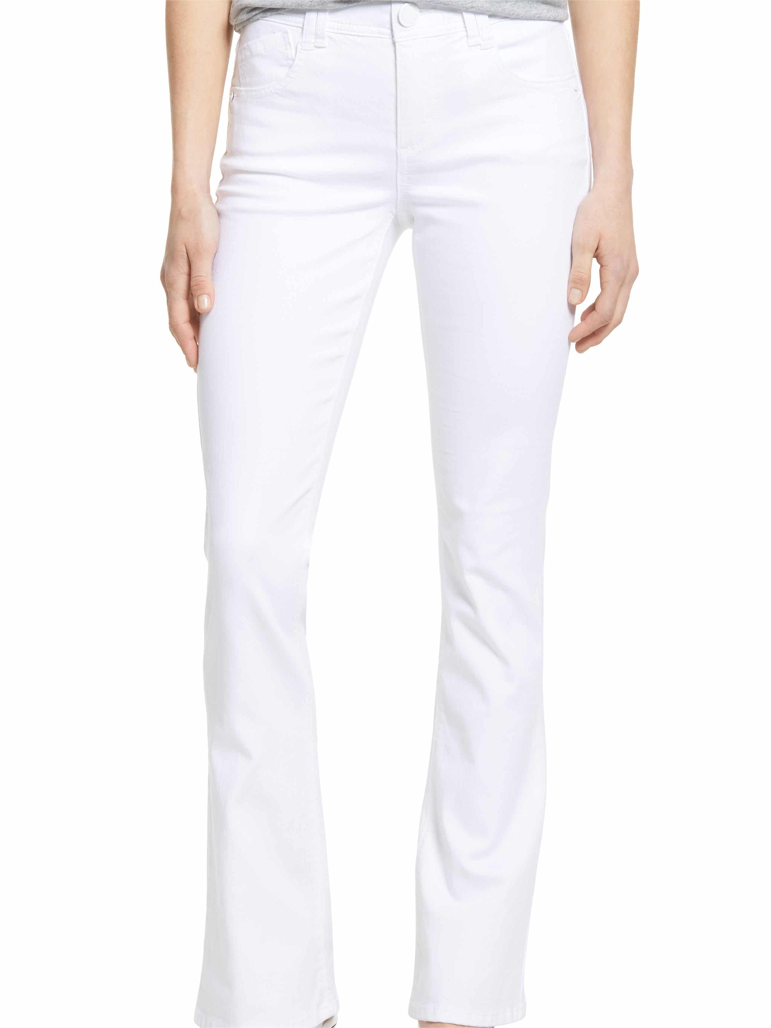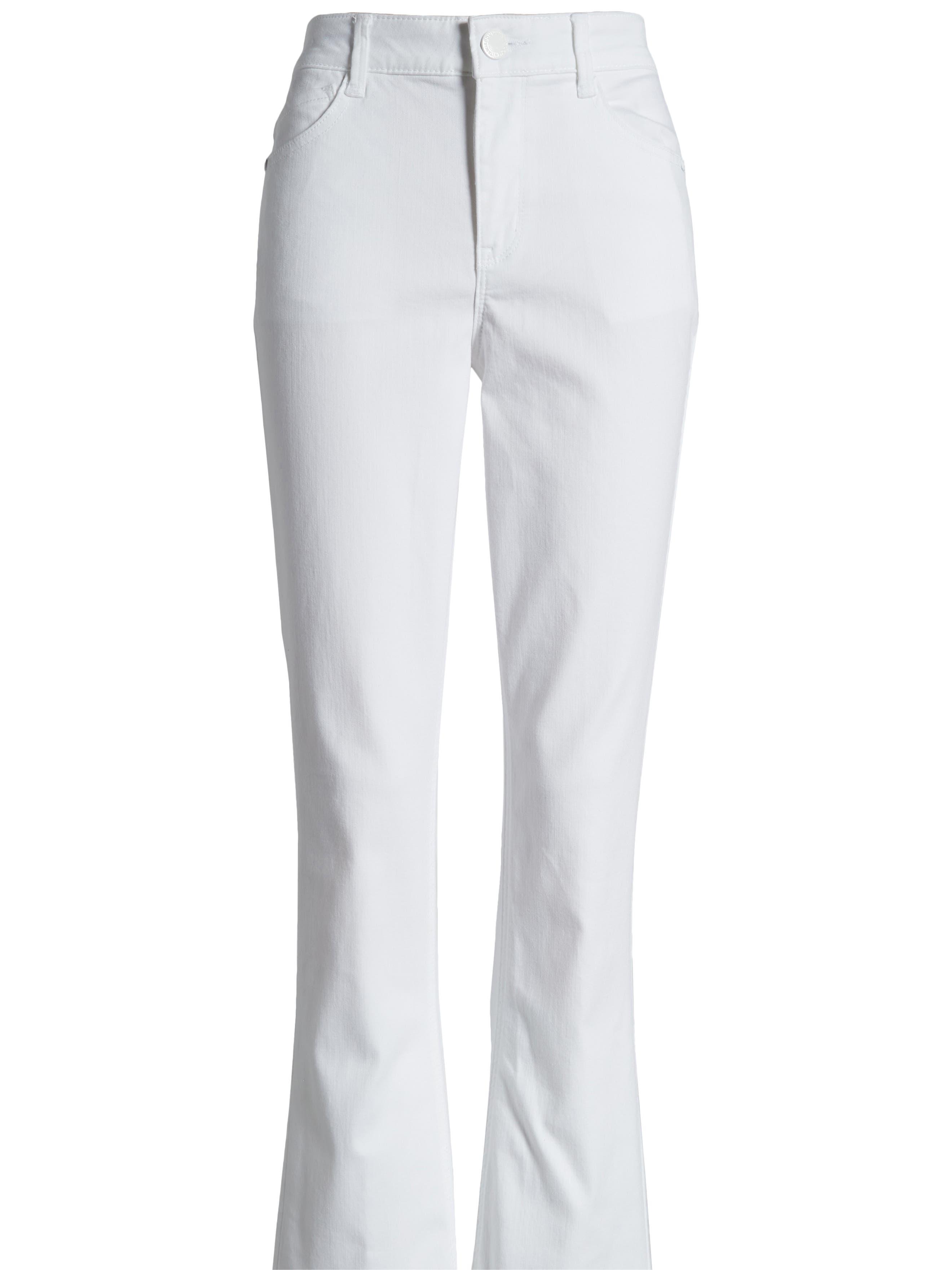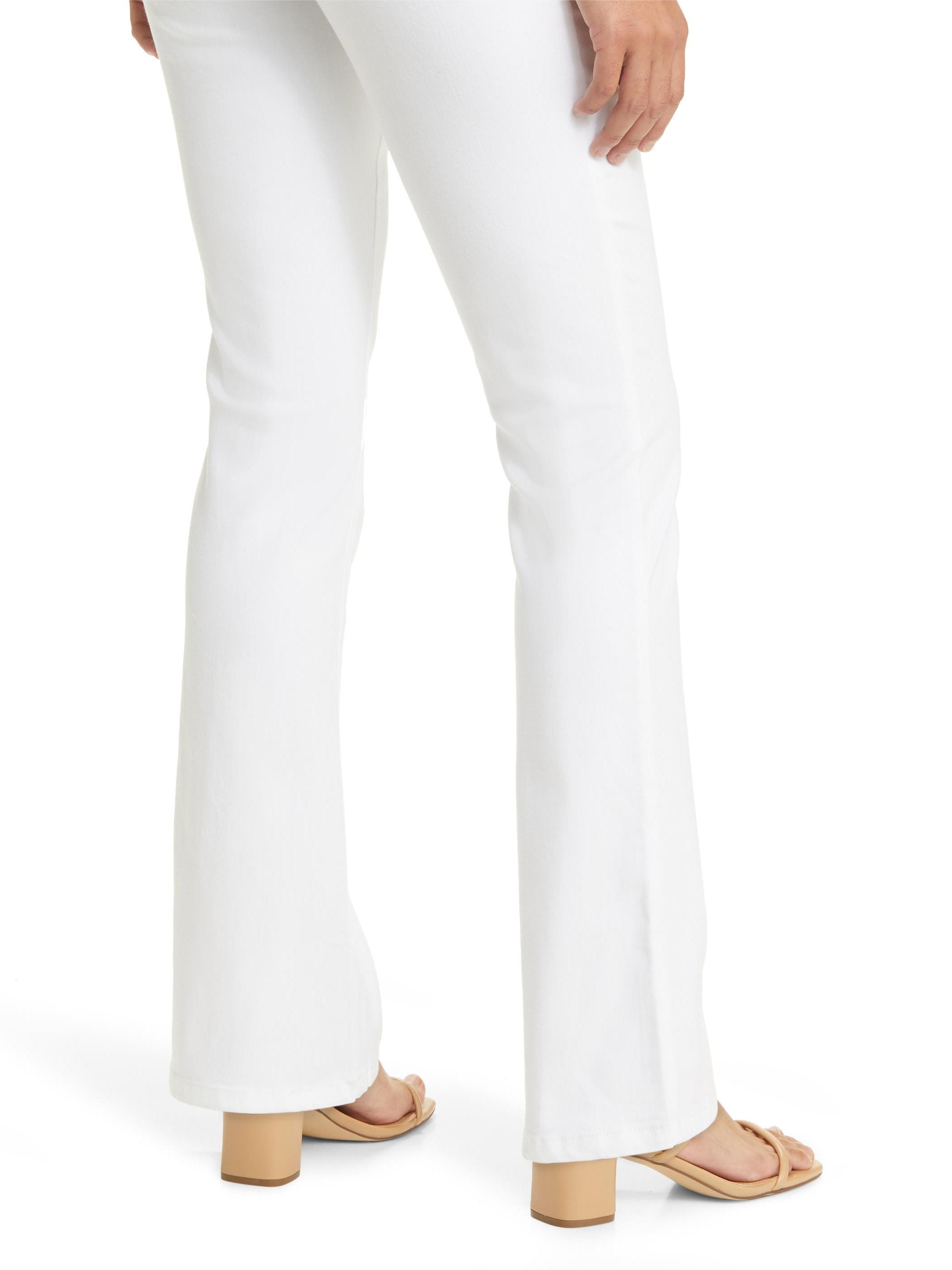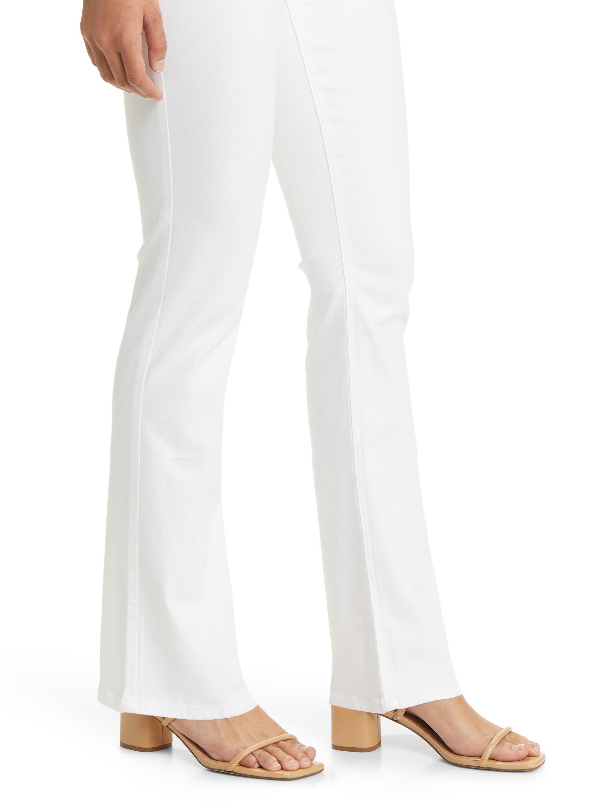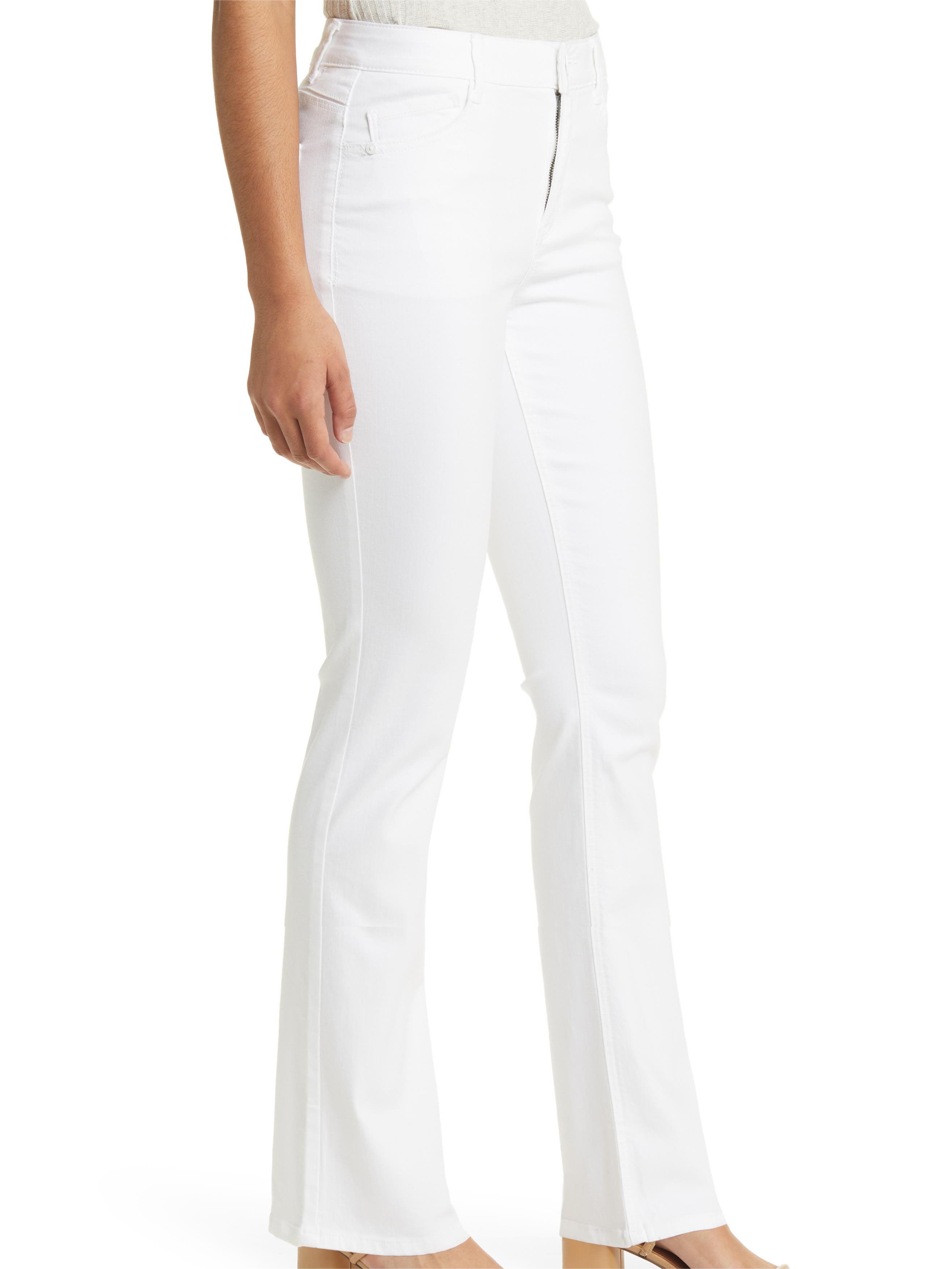 These high-waisted full-length flared pants are made of lightweight stretch denim for comfortable shaping and securing.
