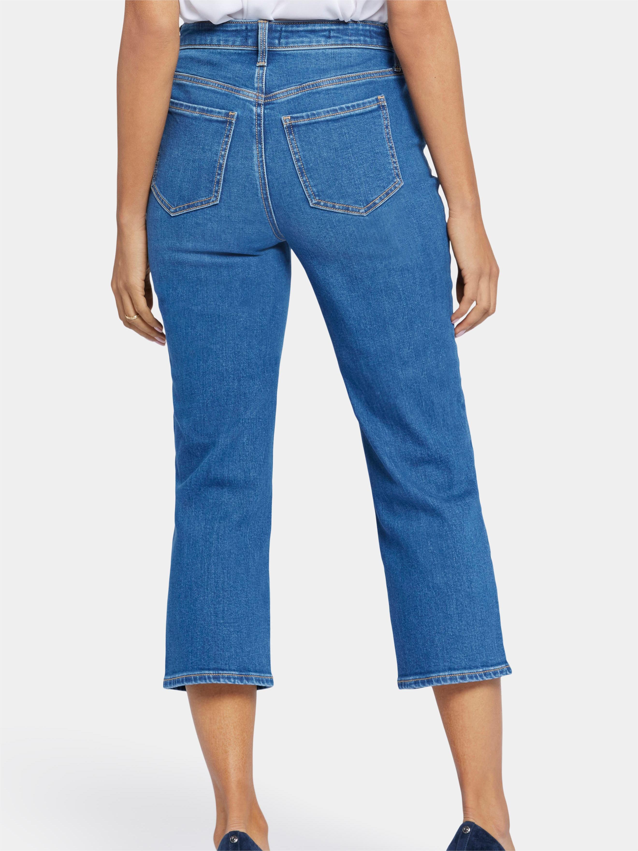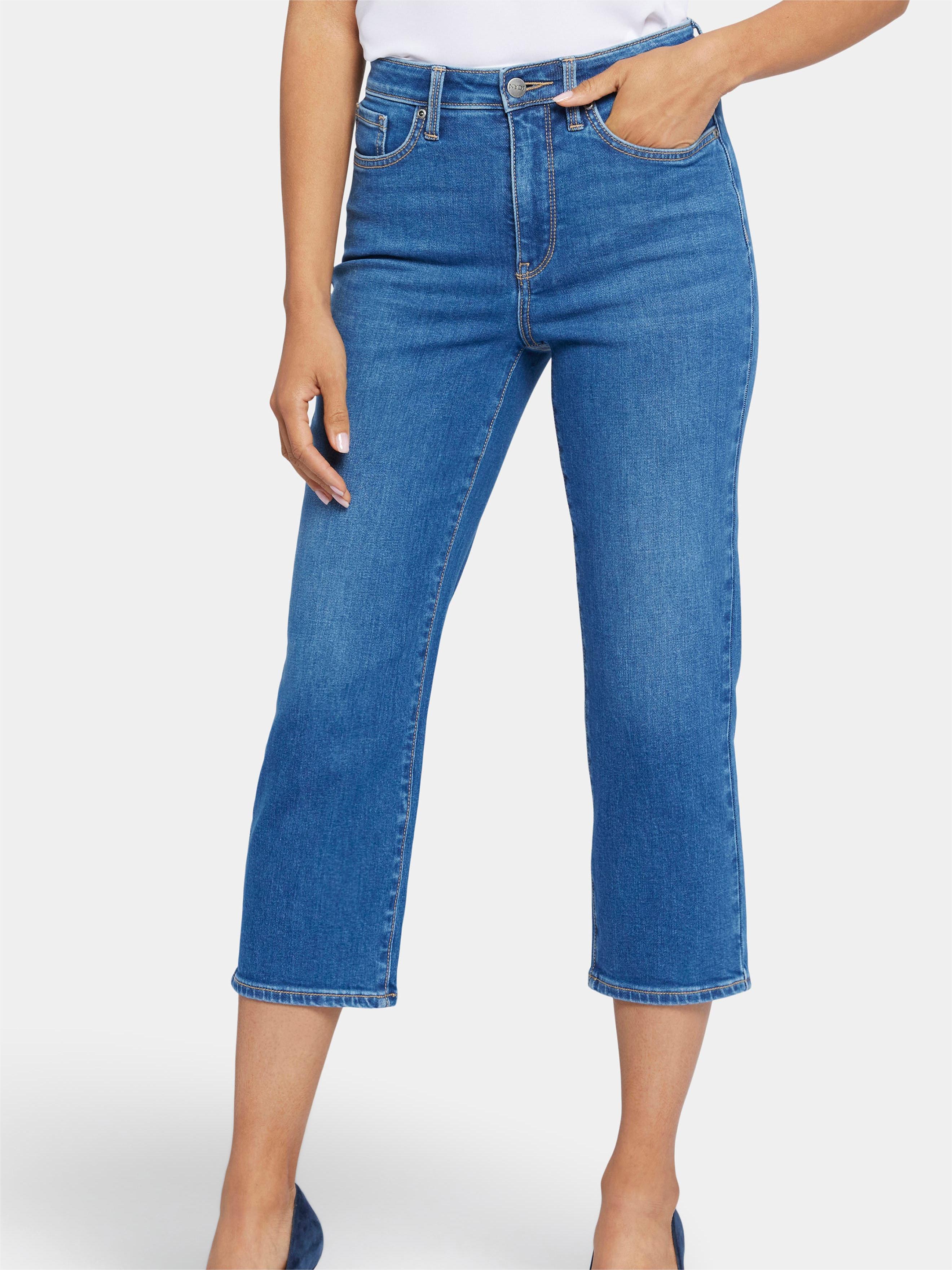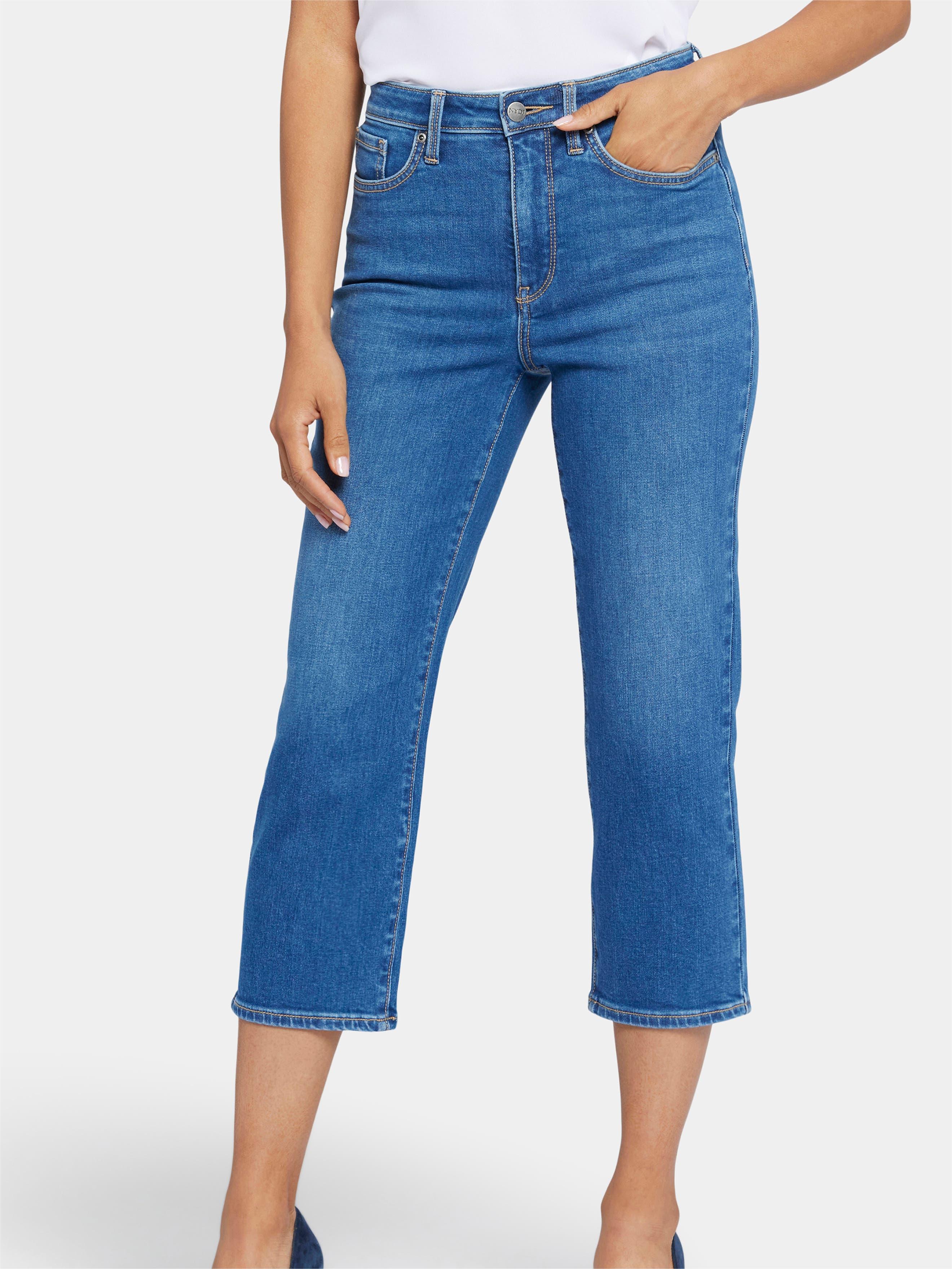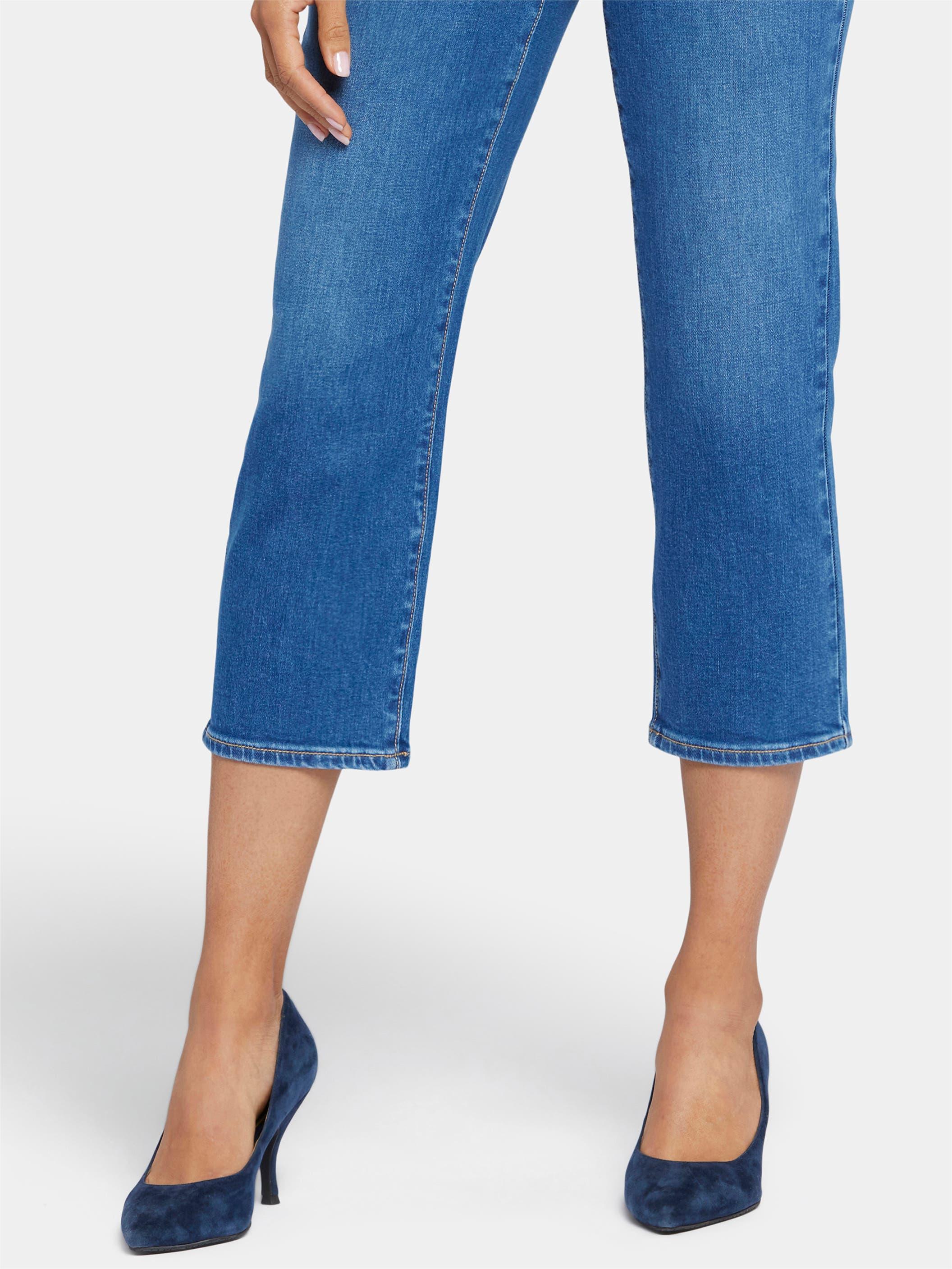 Slim and casual at the leg, these stretch denim cropped trousers use casual light washing technology to comfortably slim down from the inside.