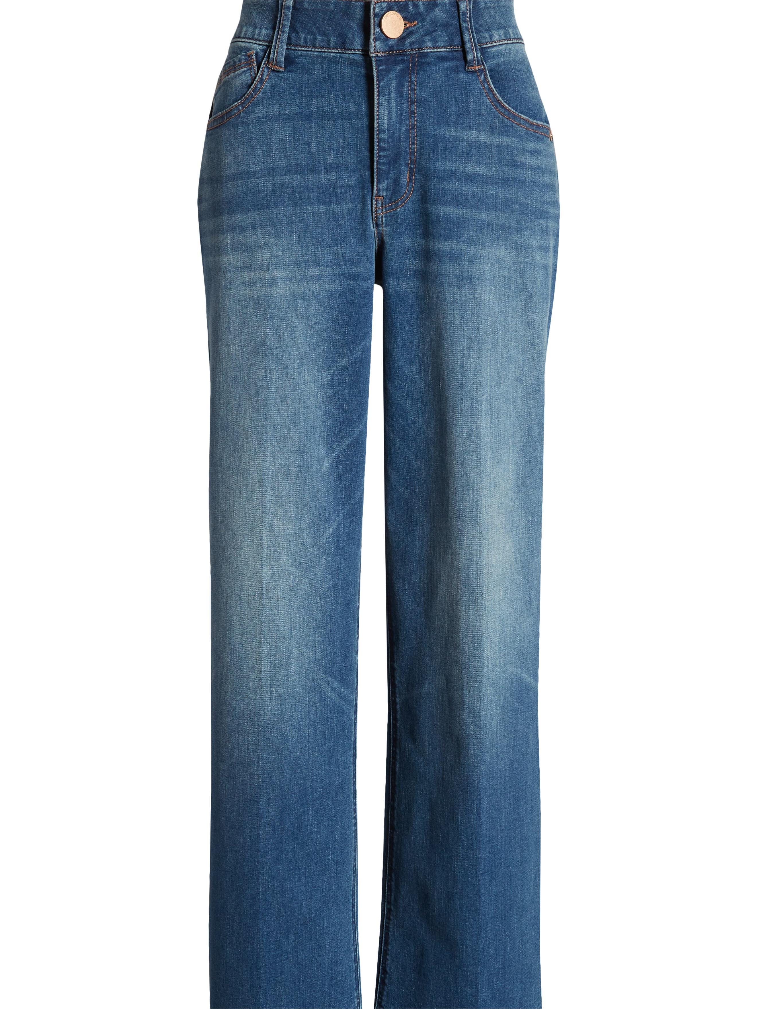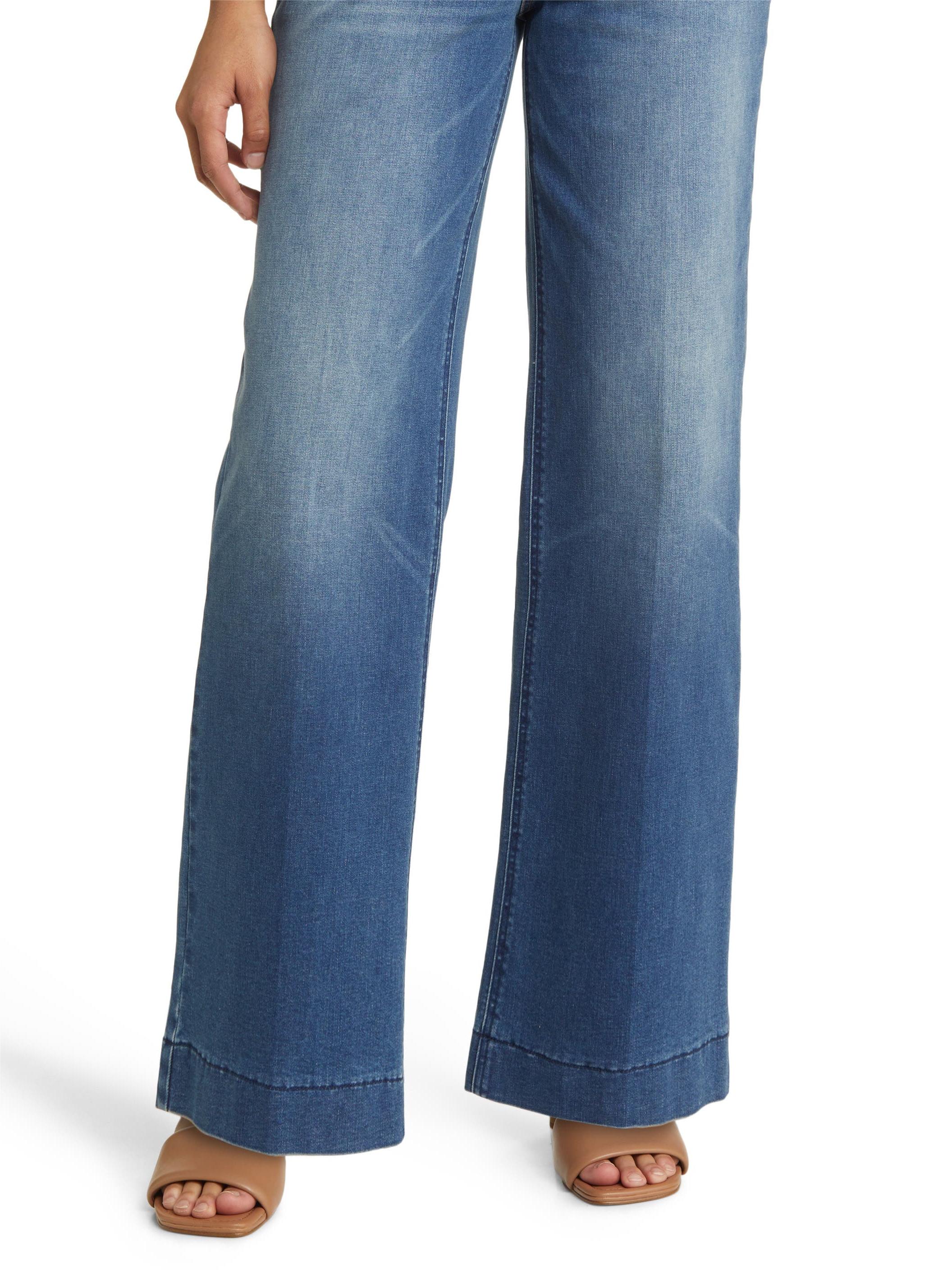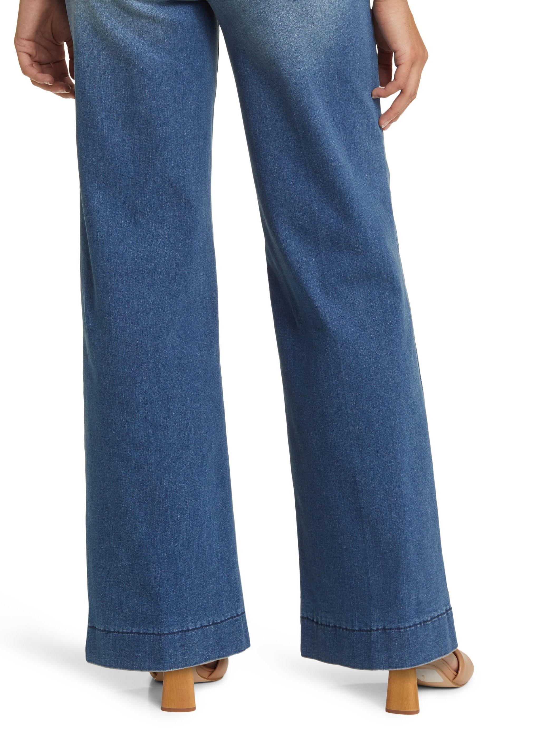 Made in a classic faded indigo wash, these jeans feature full-length wide legs, trouser hemline, and are flexible and fixed.