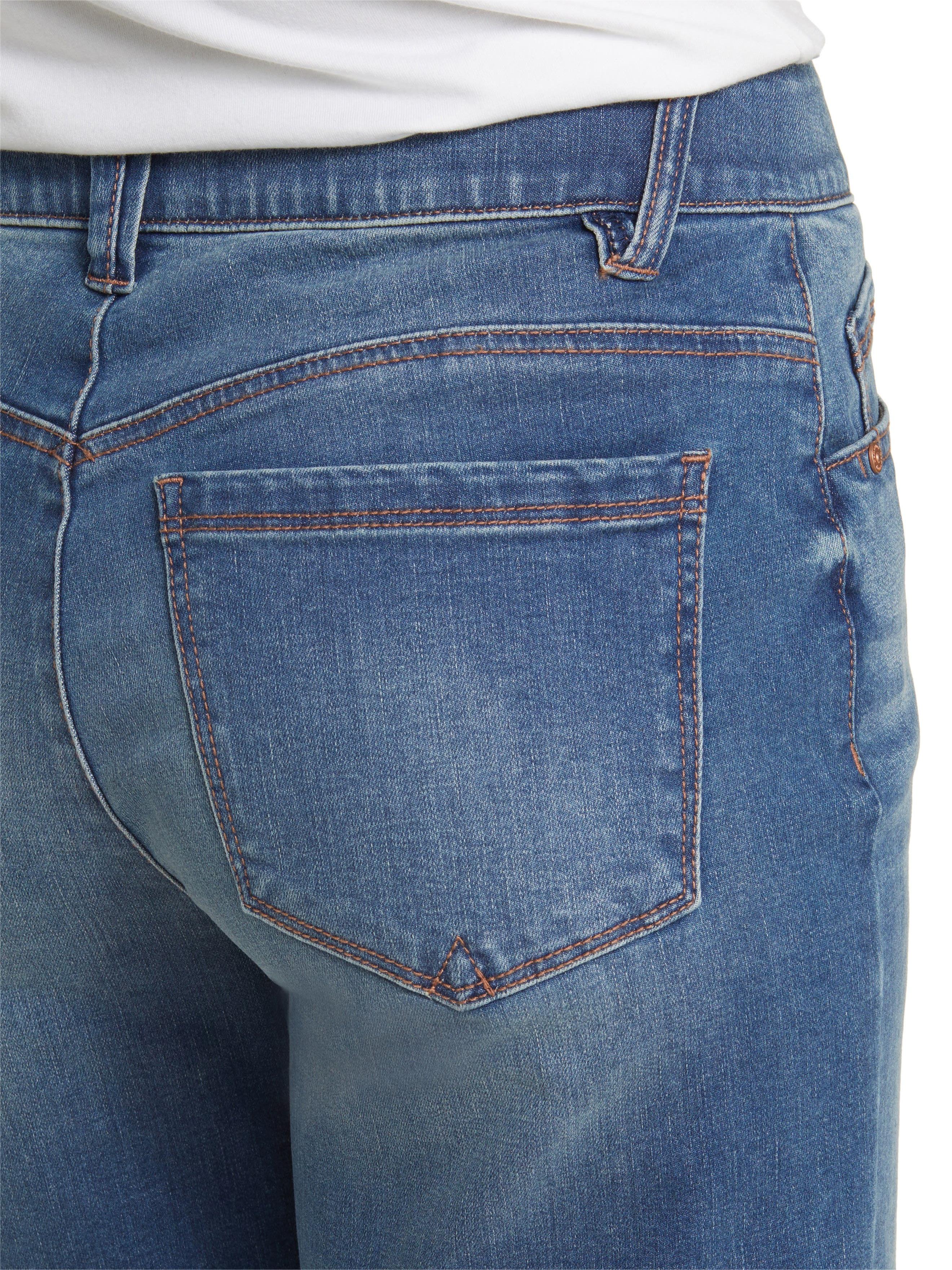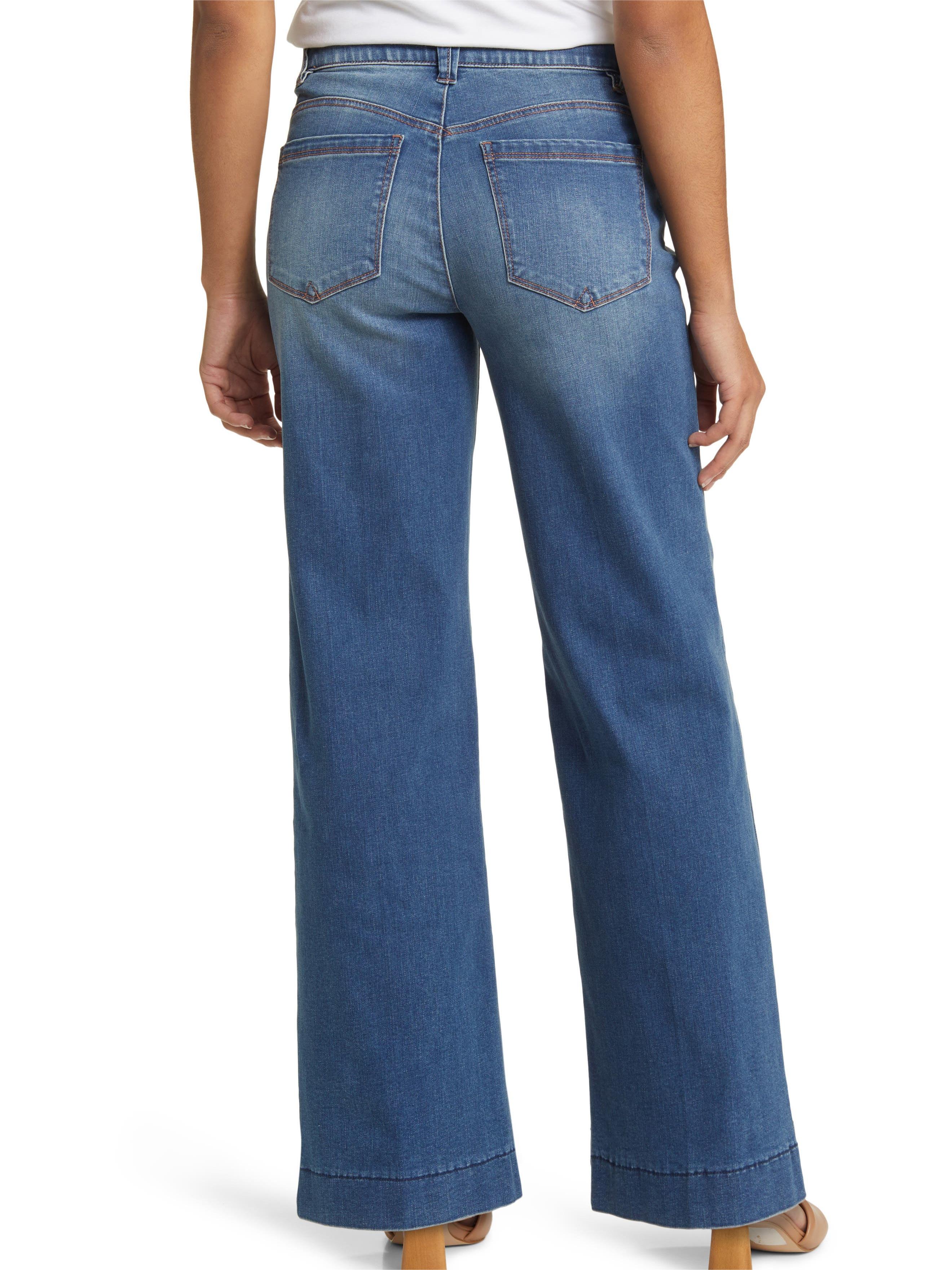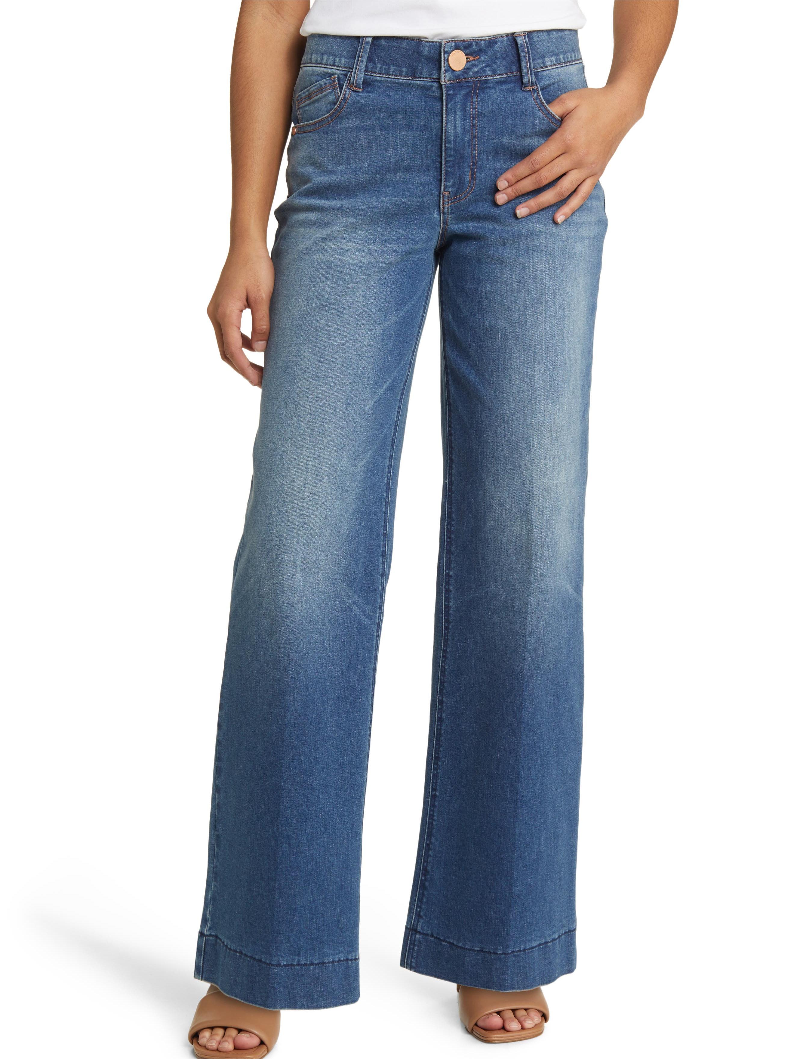 Made in a classic faded indigo wash, these jeans feature full-length wide legs, trouser hemline, and are flexible and fixed.