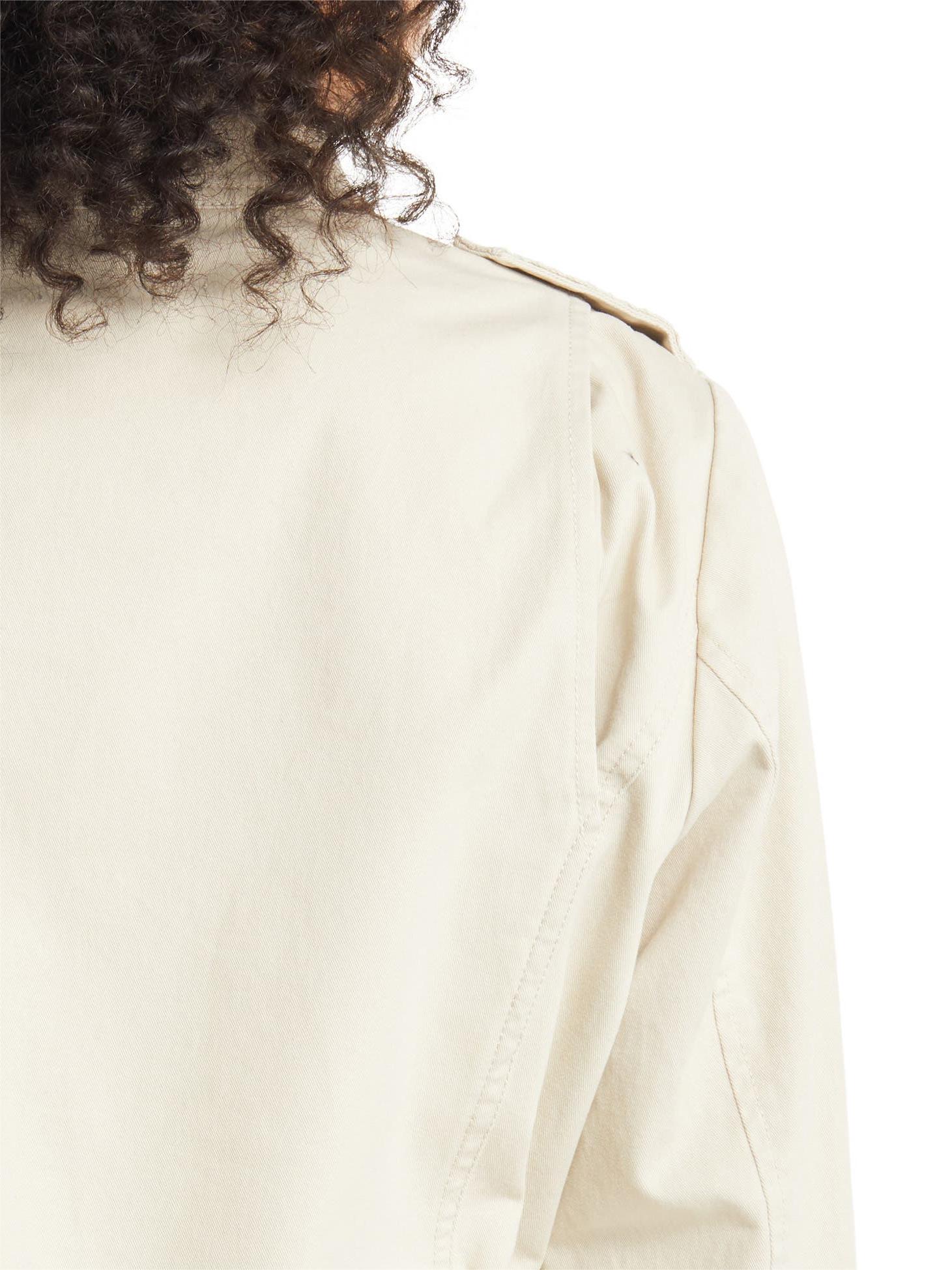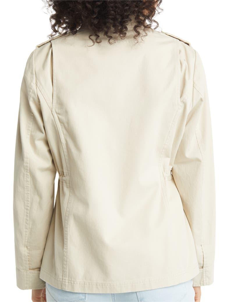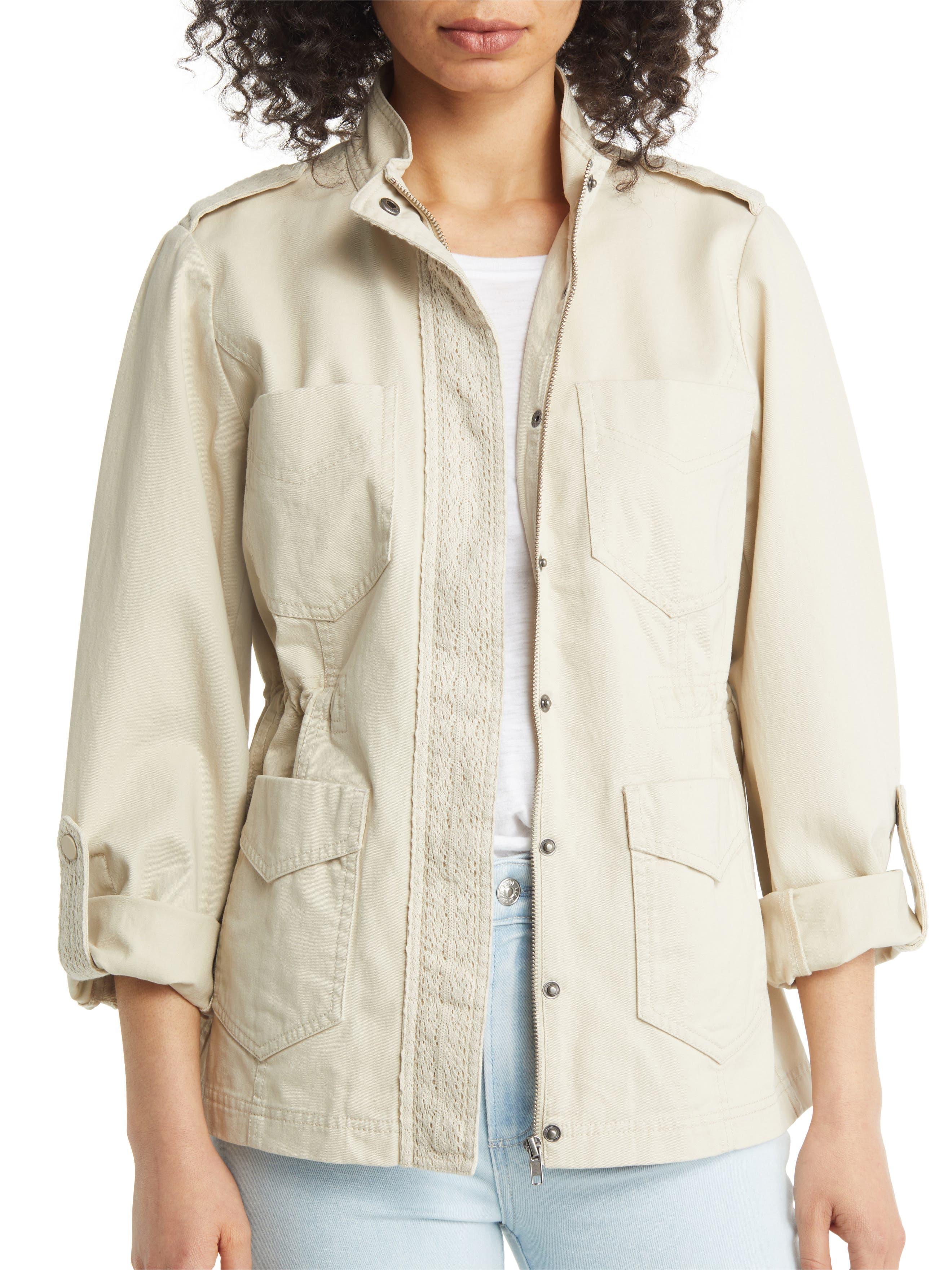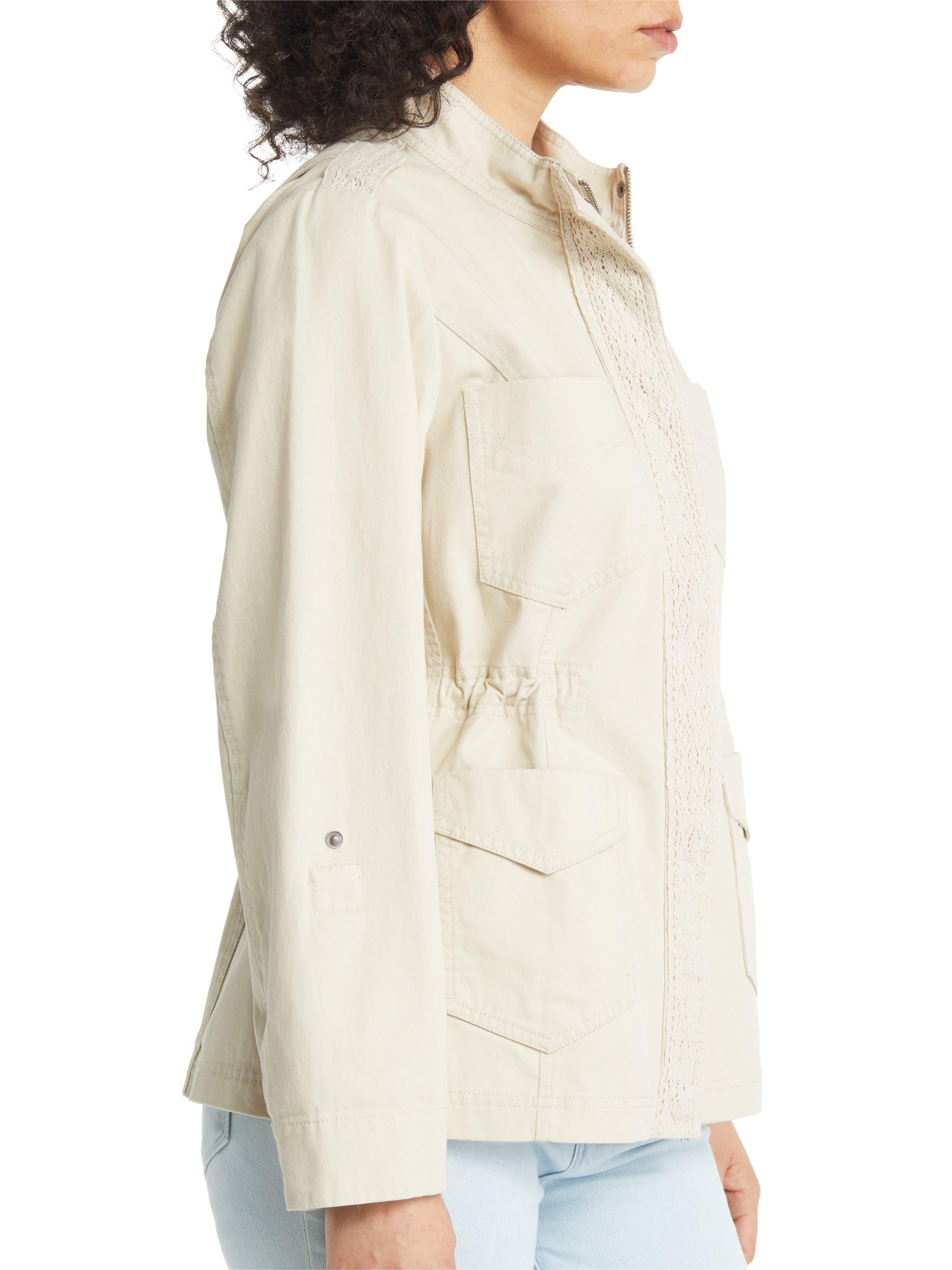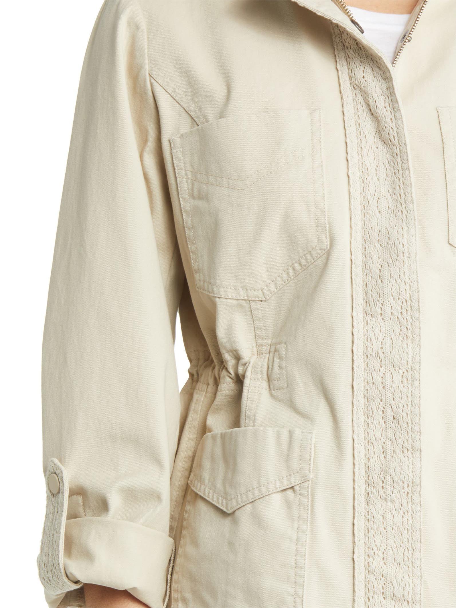 A lace-covered placket and epaulets sweeten up the utilitarian aesthetic of this cotton-twill jacket finished with a plethora of patch pockets.