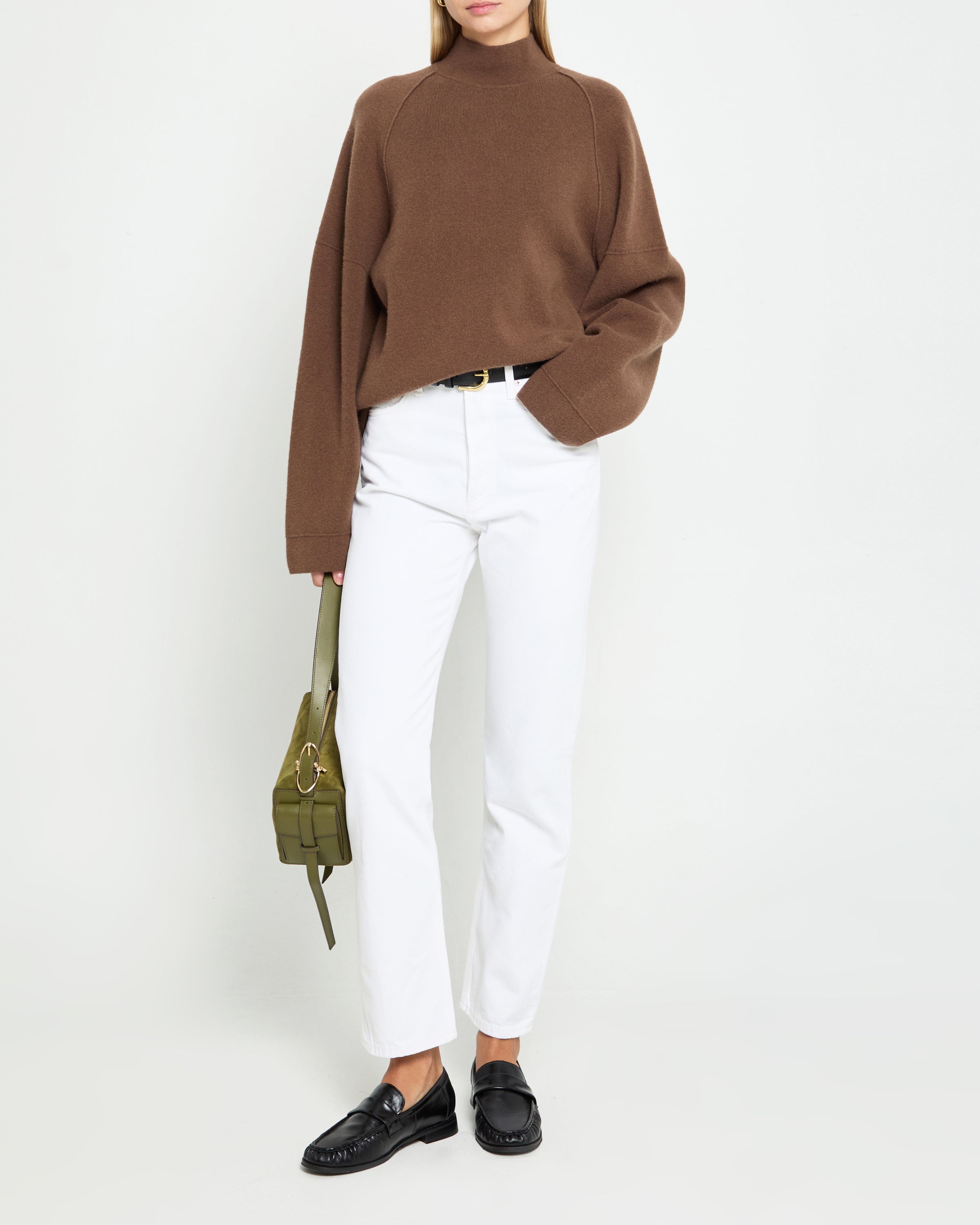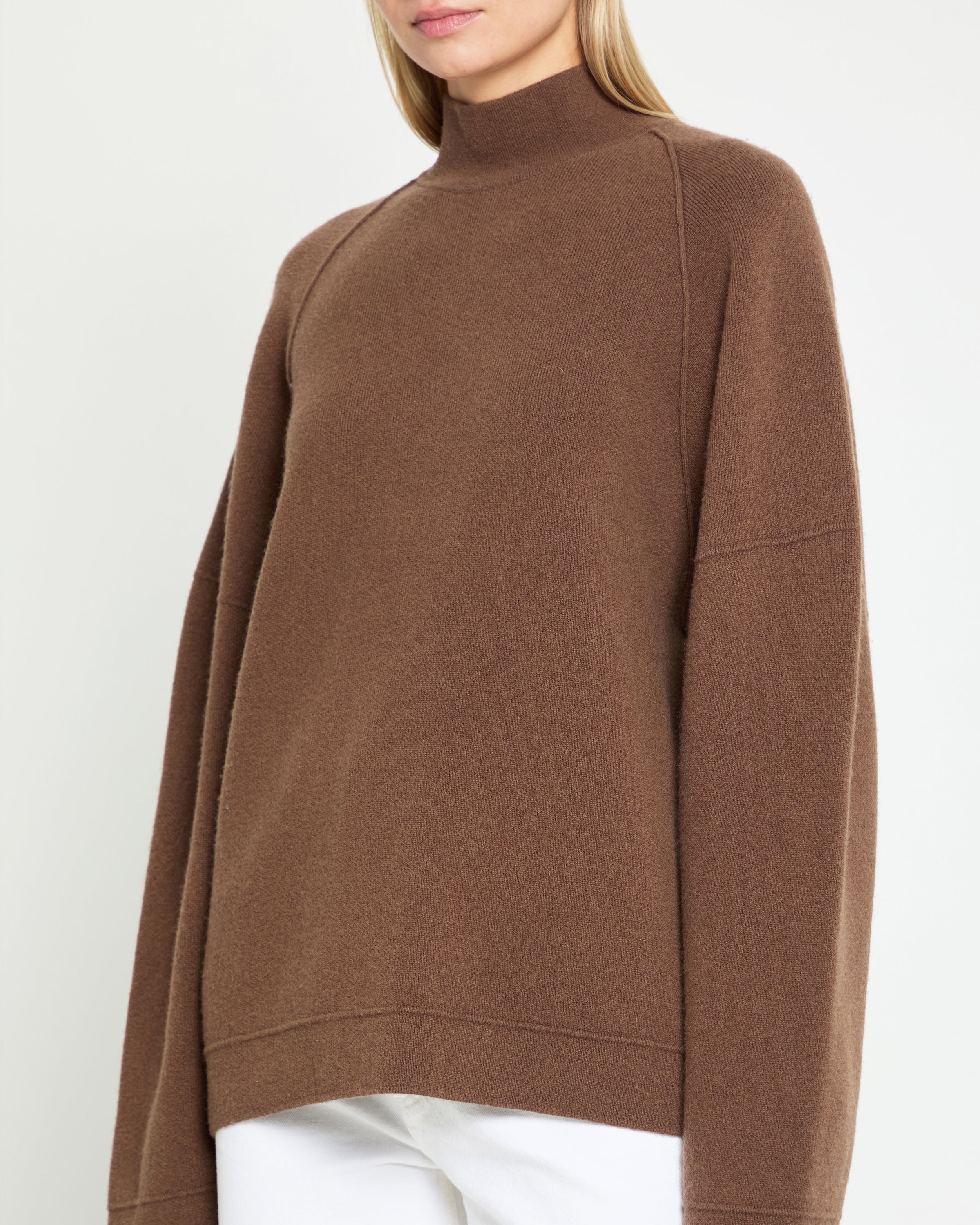 The turtleneck and oversized fit provide both style and comfort, while the wool ensures warmth and coziness. The rich brown hue adds a touch of sophistication to any outfit. Stay warm and stylish with this expertly crafted sweater.