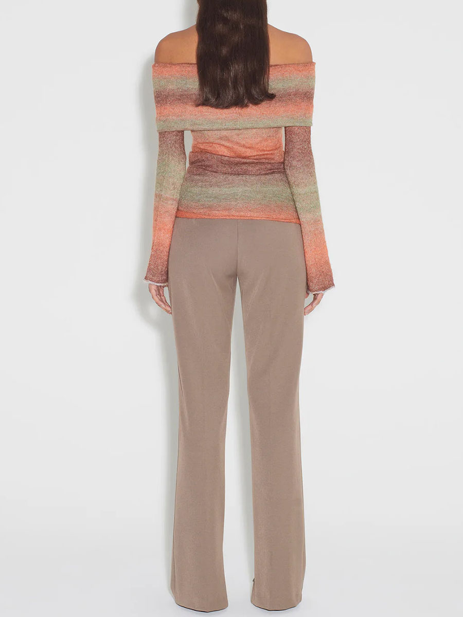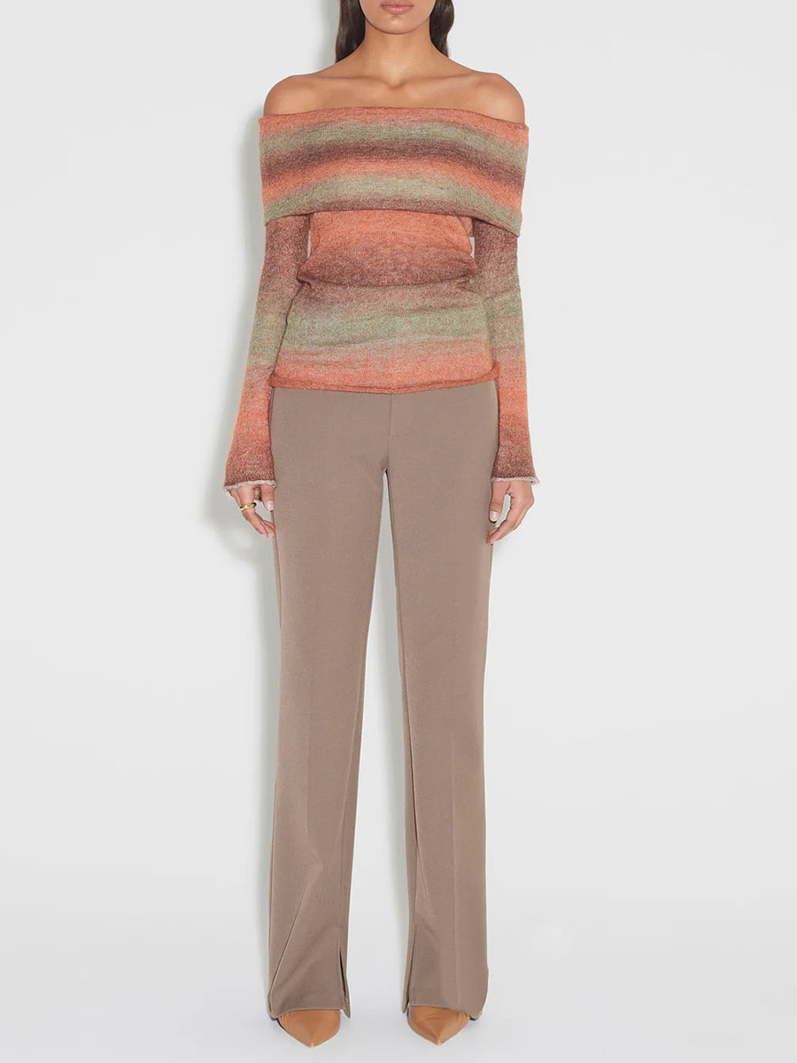 The Knit is a gorgeous take on a regular knit. It features a fold over, off the shoulder neckline and is loosely fitted around the body to cover the hip. The sleeves have a slight flare and is fabricated in a beautiful wool mohair blend.