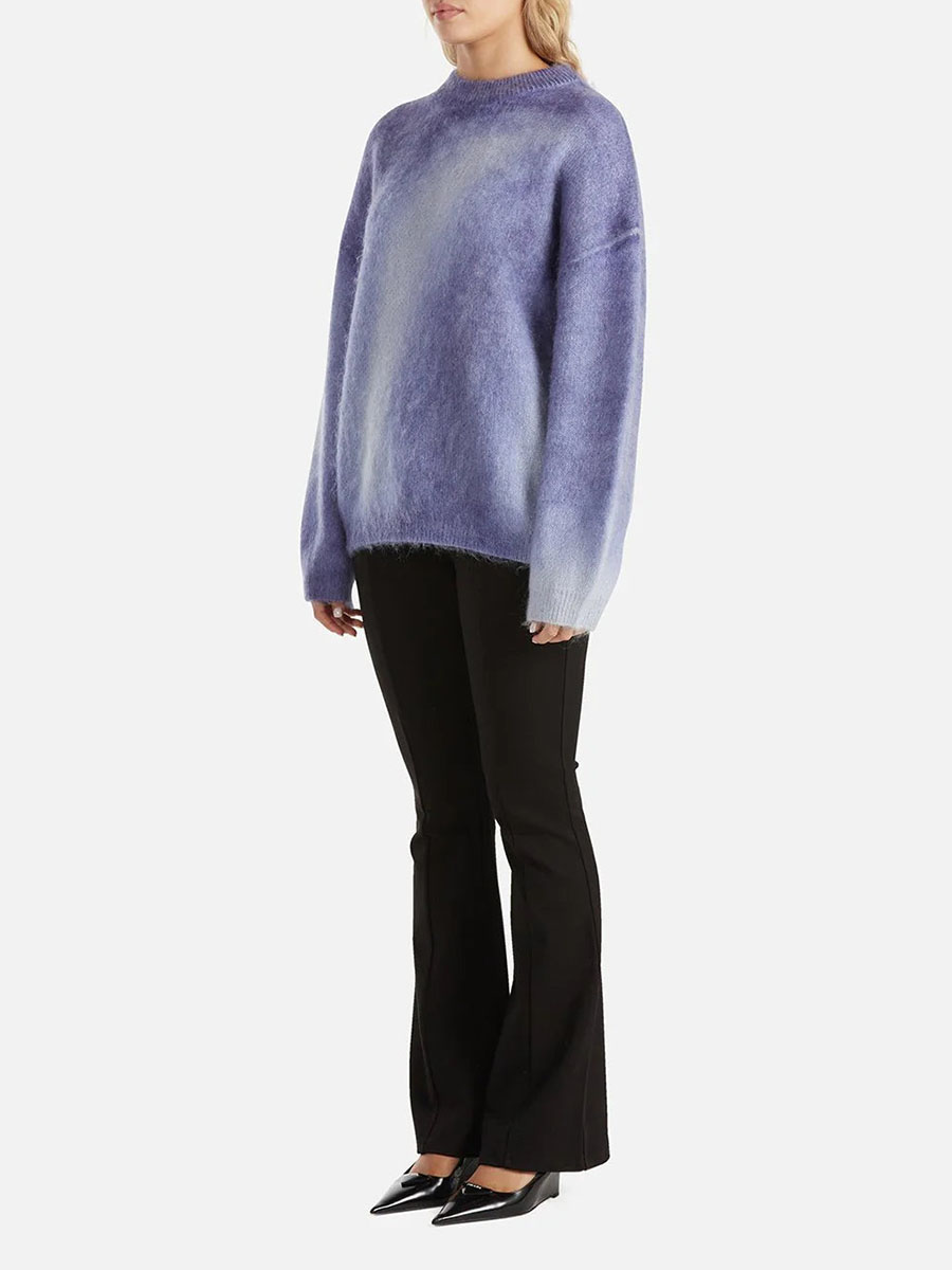 The Knit Pullover has been crafted from a luxe wool / mohair blend to achieve the perfect, lightweight layering piece in an ombre spray effect. The Soft knit features an oversized slouchy fit with drop shoulder design and a ribbed funnel neckline, hem & cuff Bands.