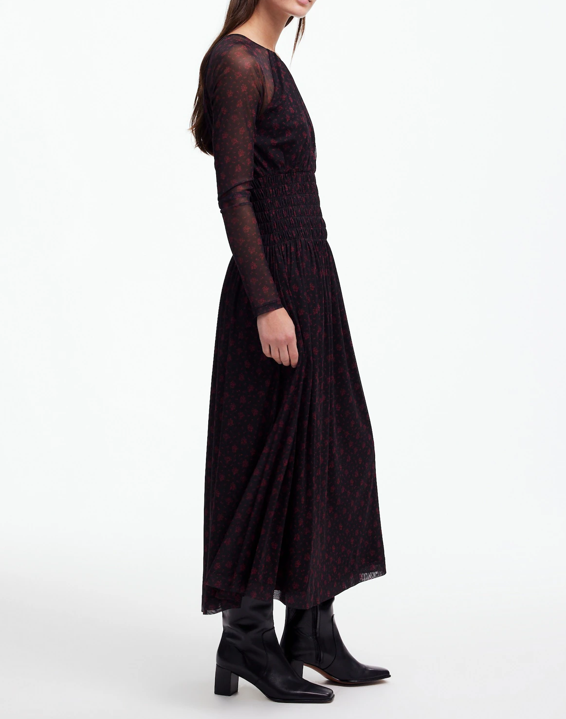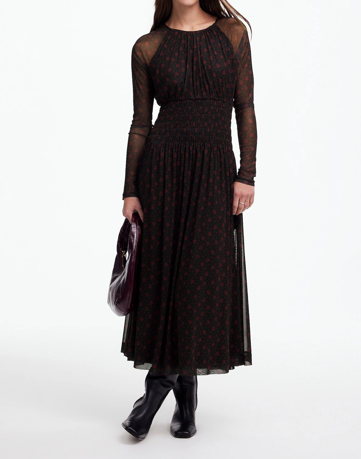 waist for a flattering fit. Its jewel neckline and fuller skirt add a touch of elegance, making it a versatile piece for any occasion.