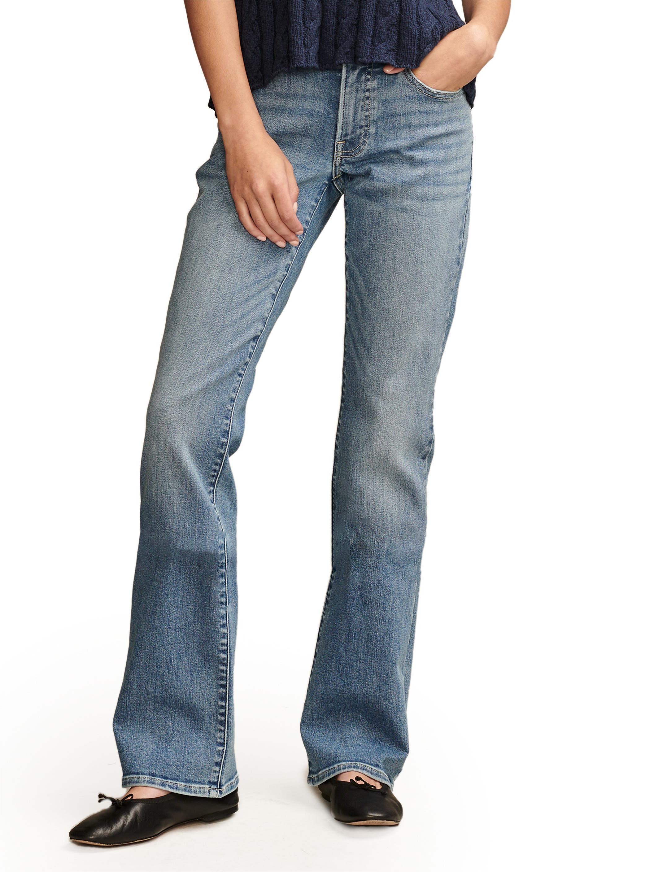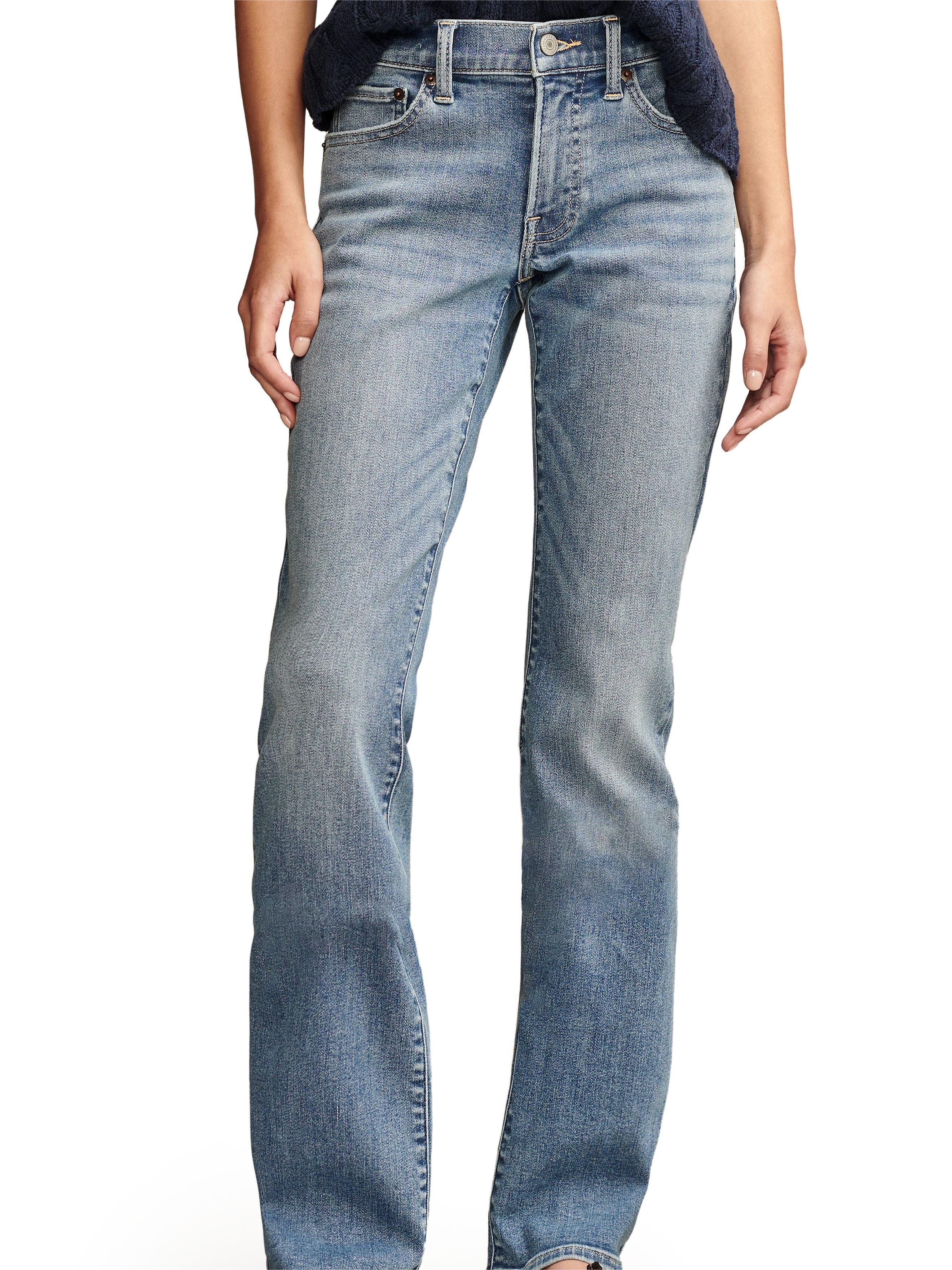 Fall for the relaxed fit of these mid-rise jeans designed in a faded wash and punctuated with bootcut hems.