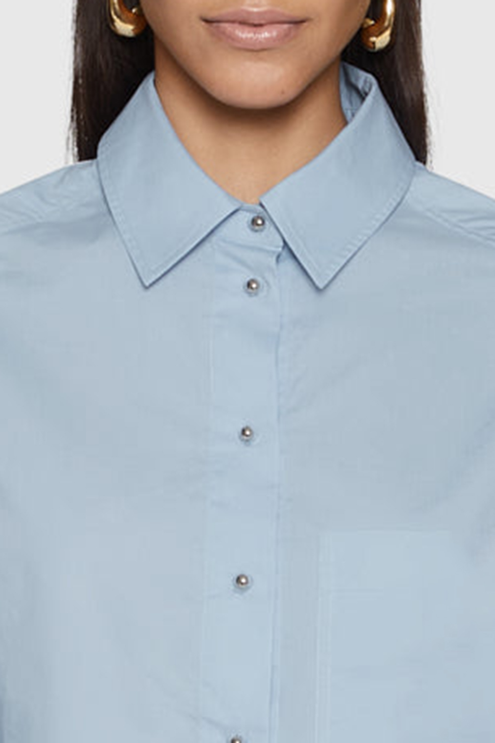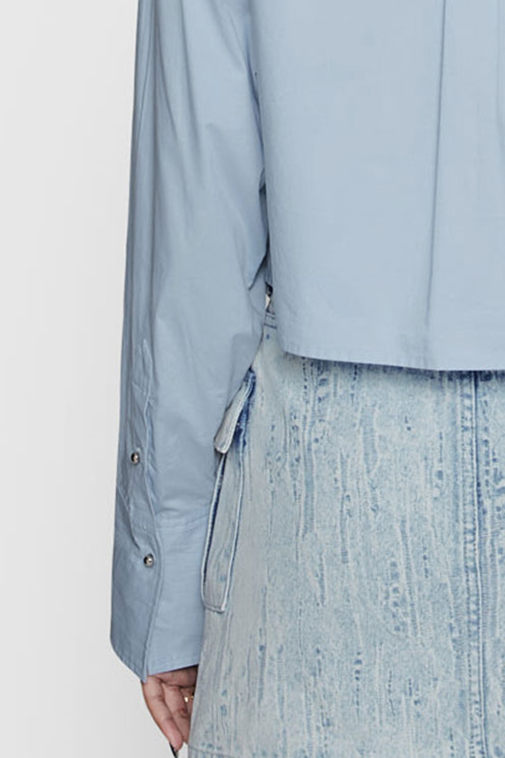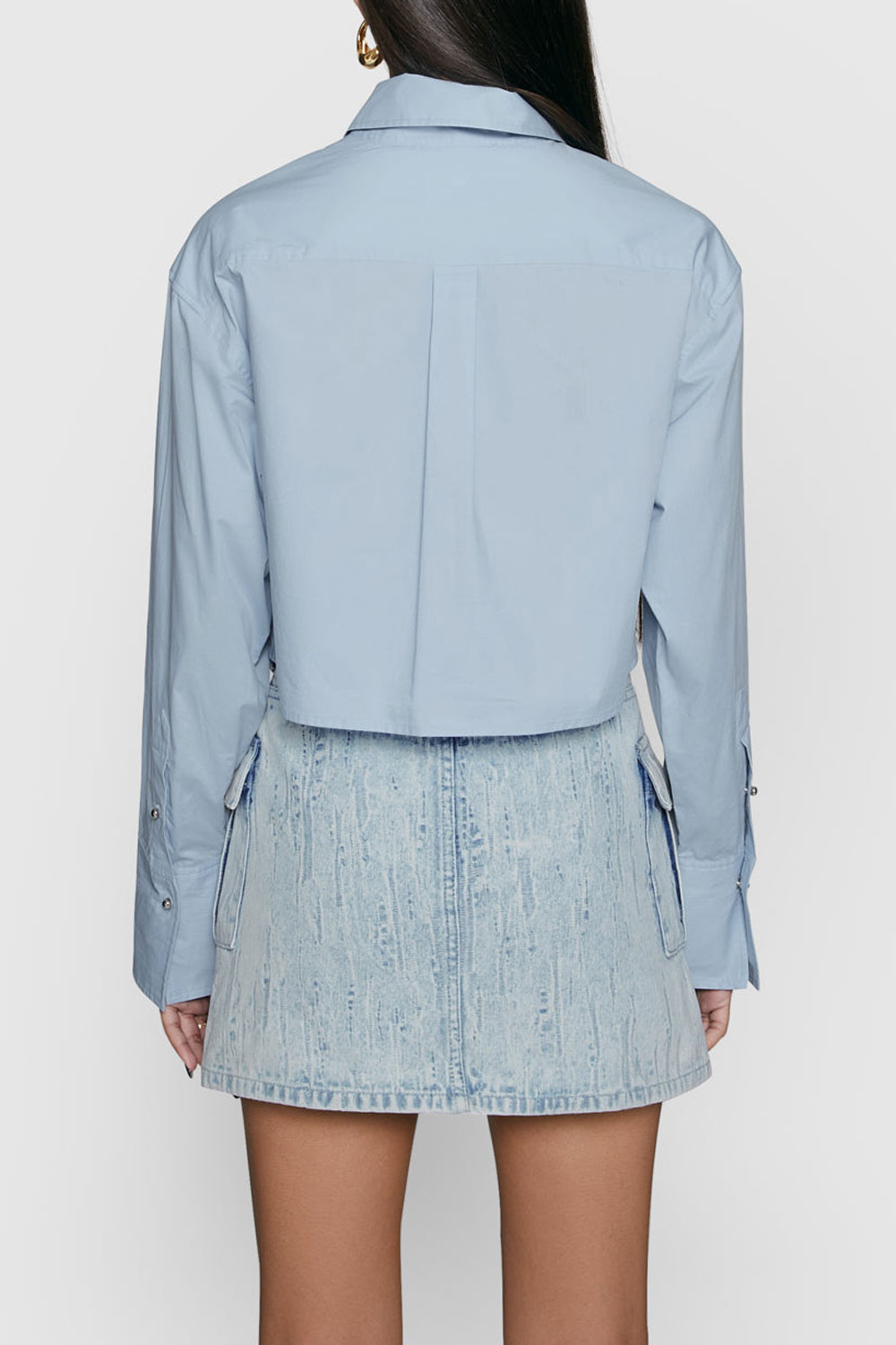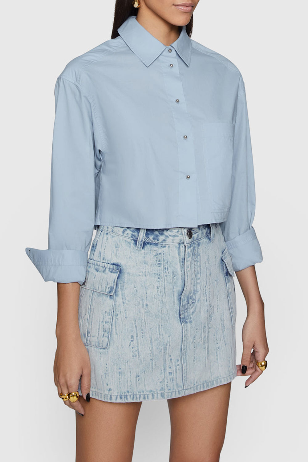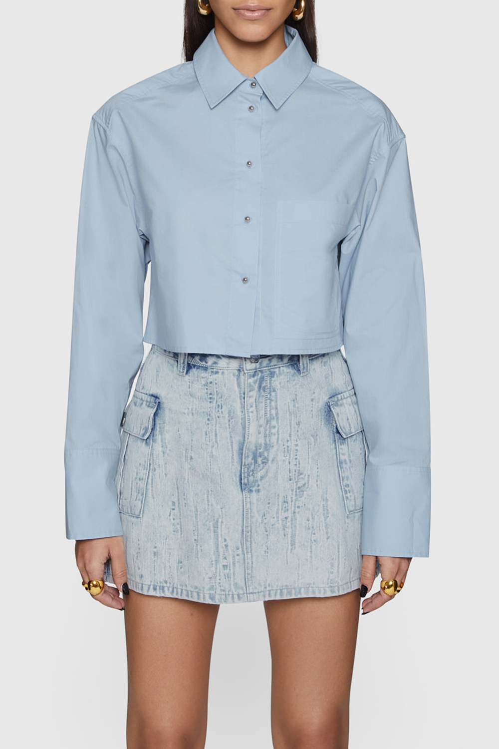 The Layne shirt is crafted from soft cotton in a cropped length that pairs perfectly with your favorite high-rise denim. Finished with a bust pocket, point collar and front button closures.