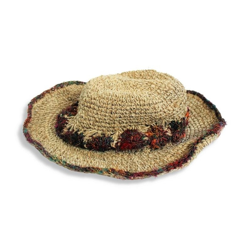 Sun Hat With Sari Silk Brim Detail