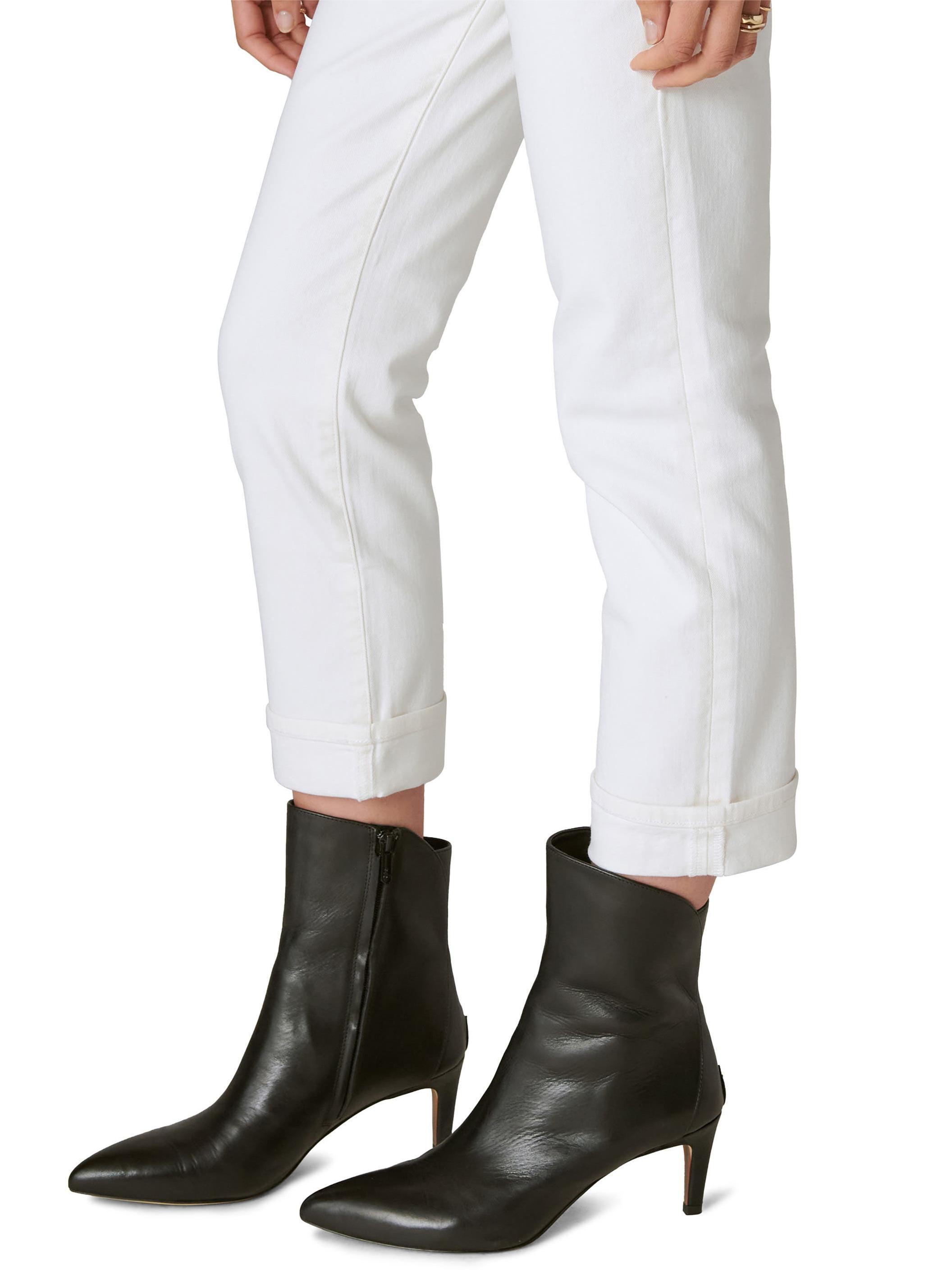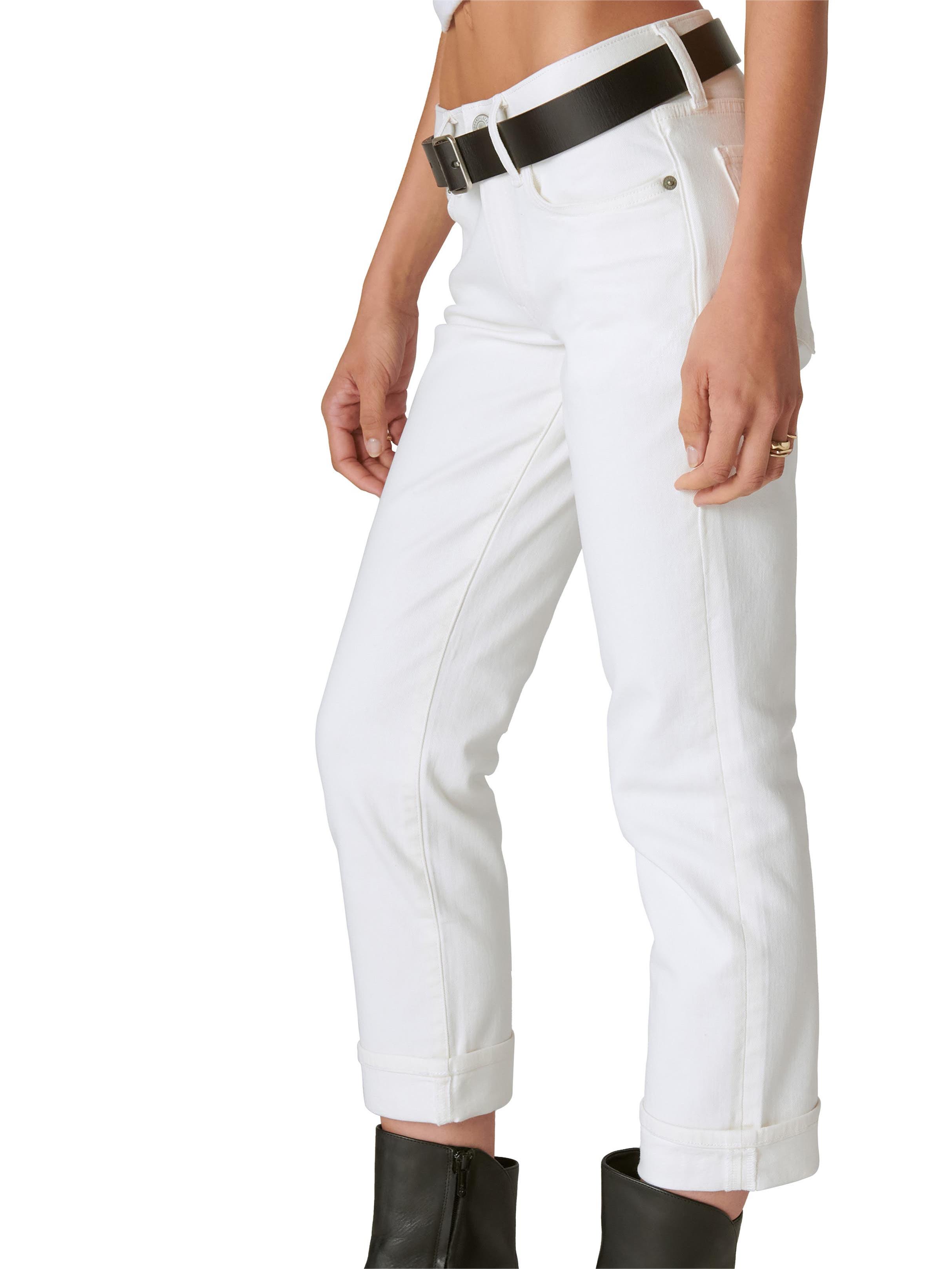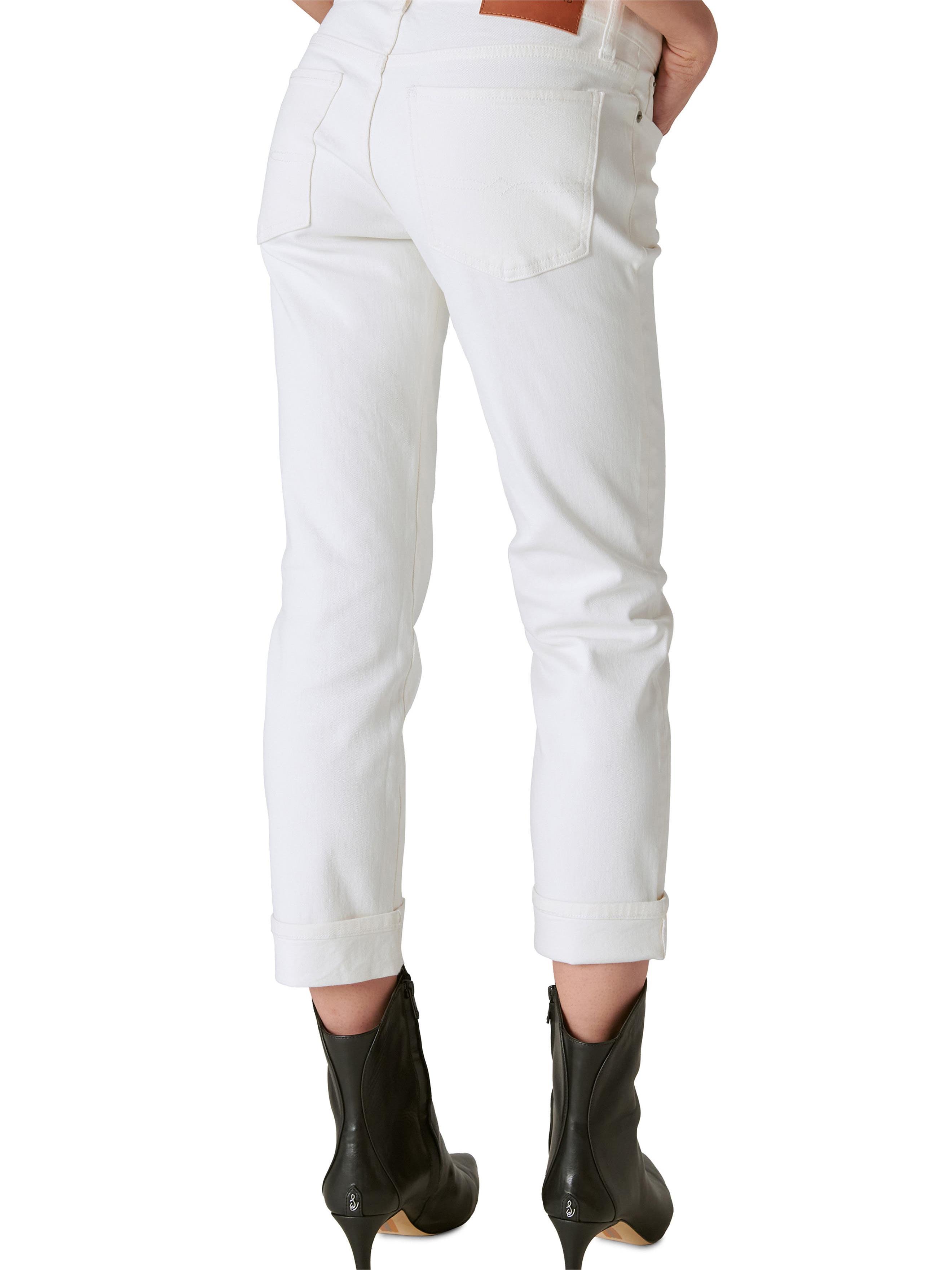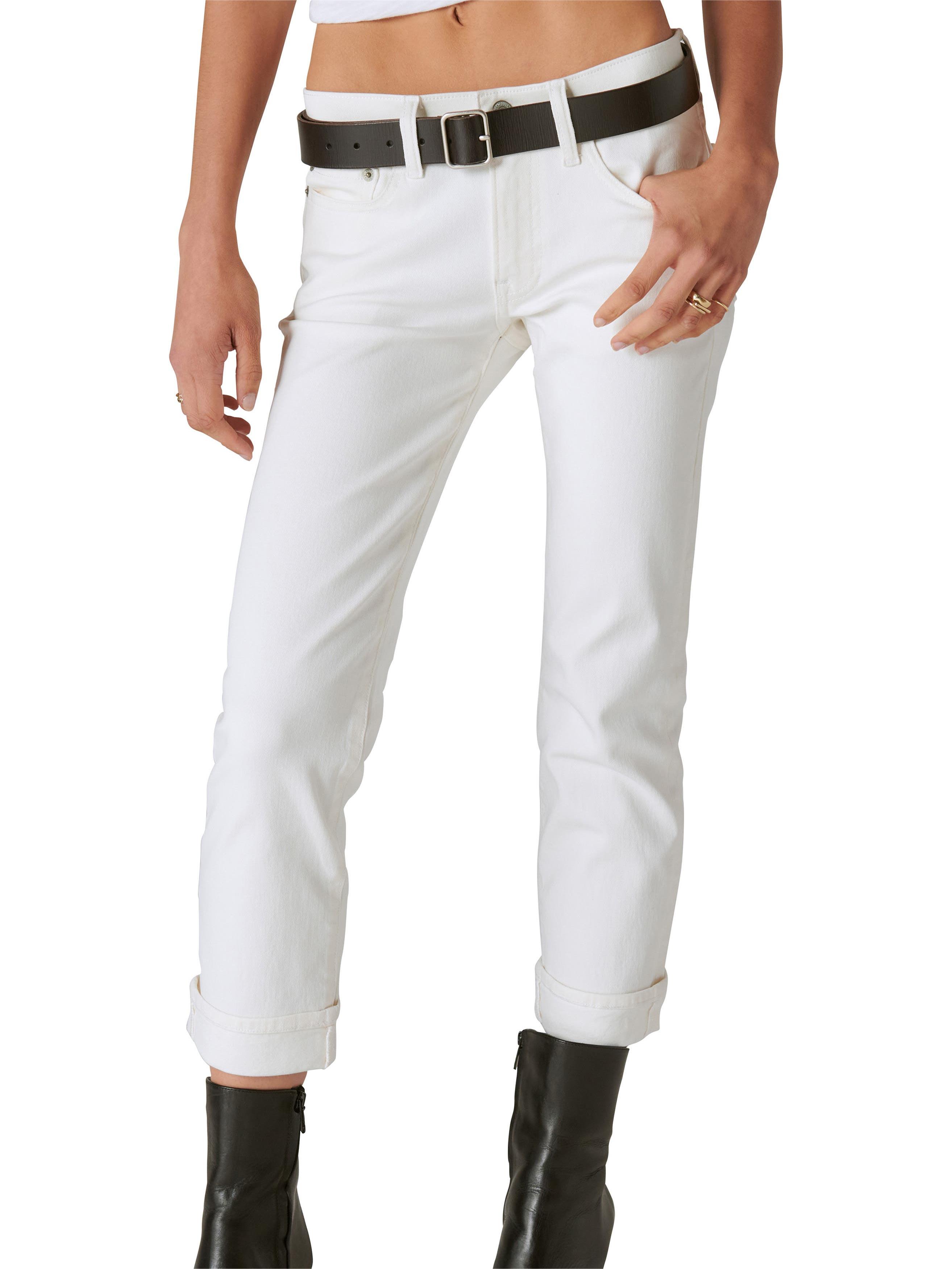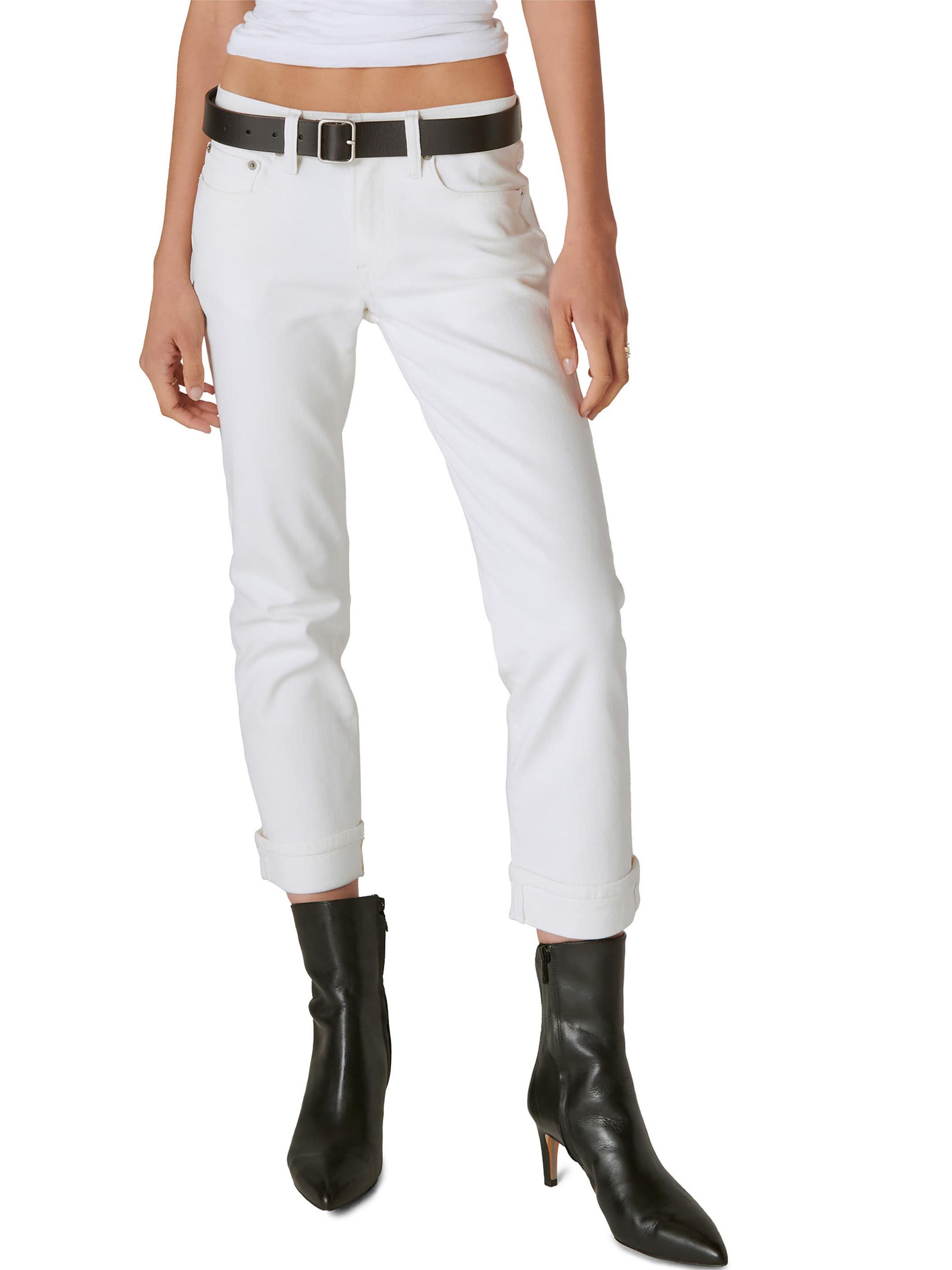 Laid-back and easy for everyday wear, these slim-cut straight-leg jeans have a mid-rise waist and cuffed hems that complete the casual-chic look.