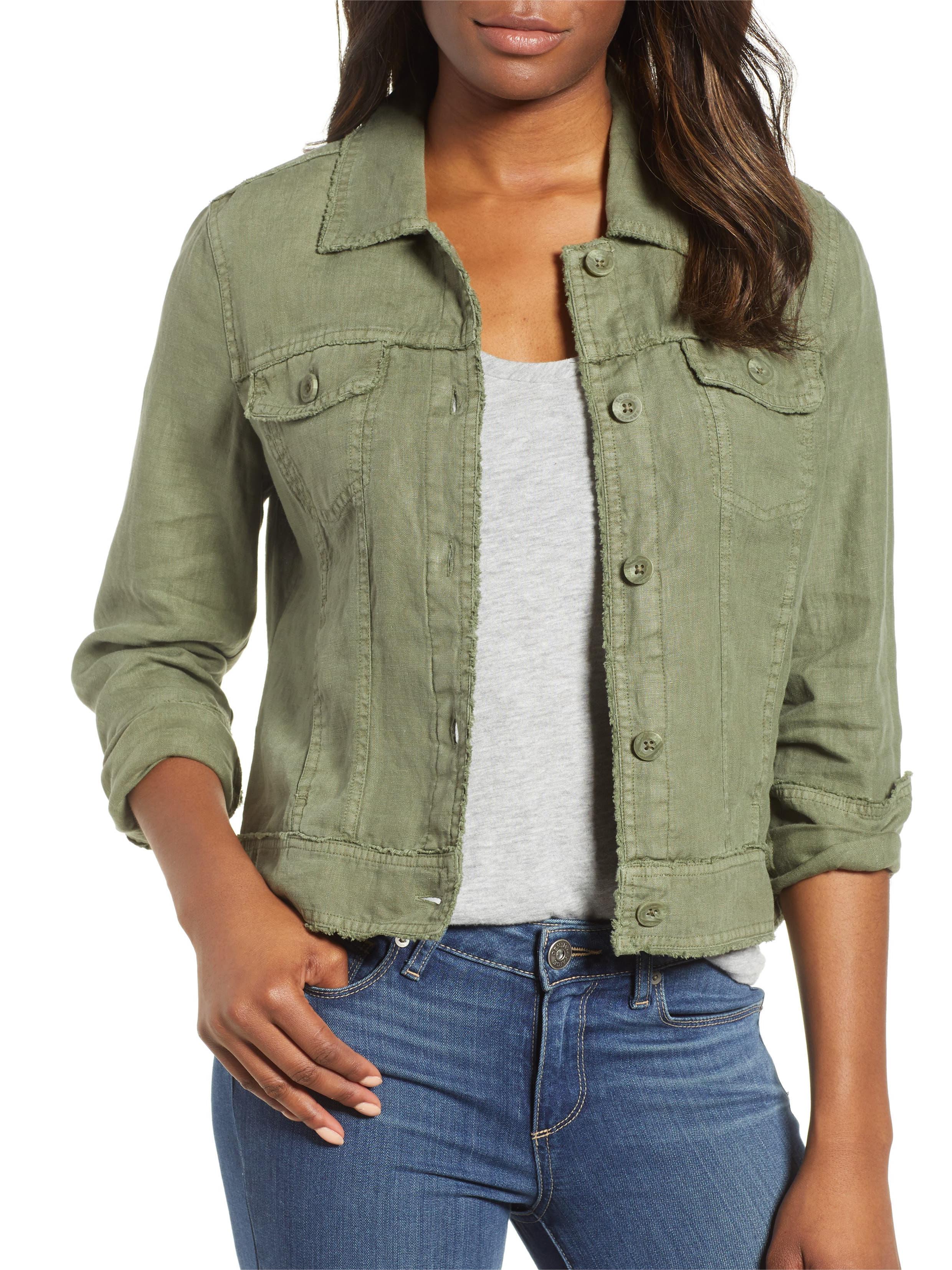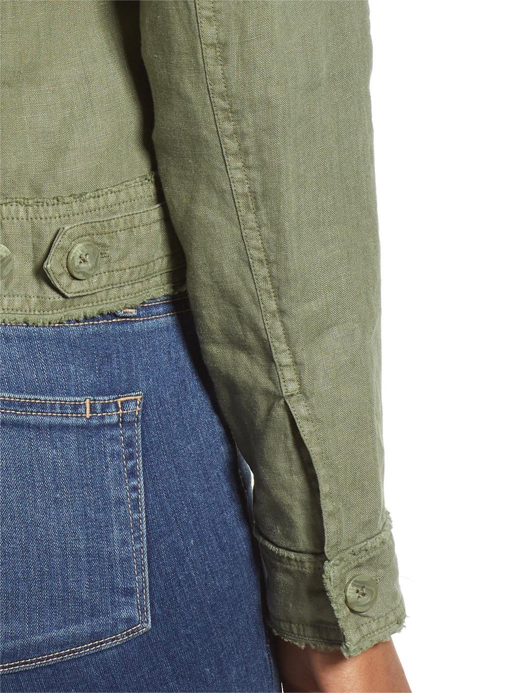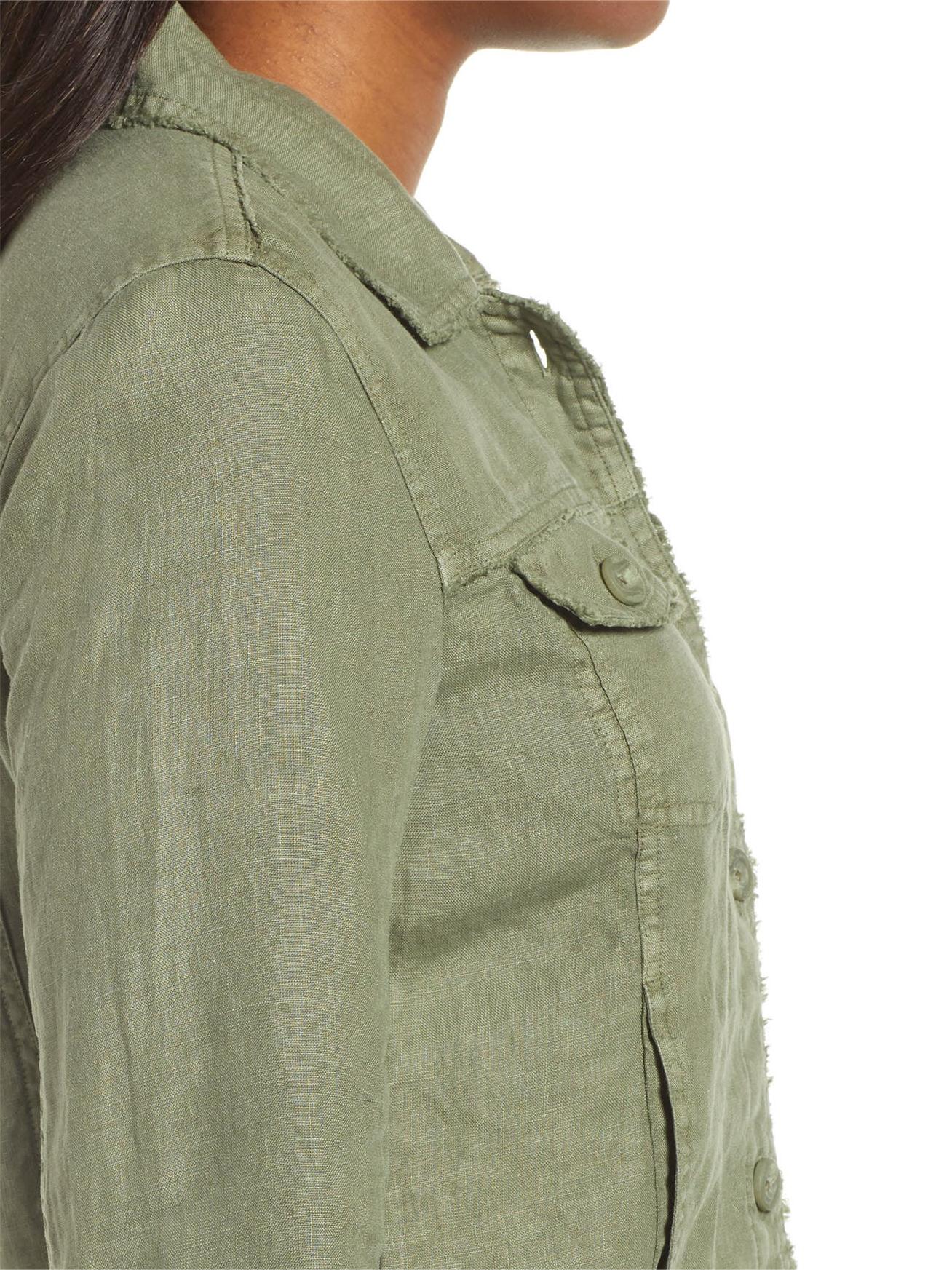 A classic trucker jacket lightens up for cooler weather in a pure linen fabrication in your choice of four versatile hues. Frayed edges add a relaxed, well-worn look.