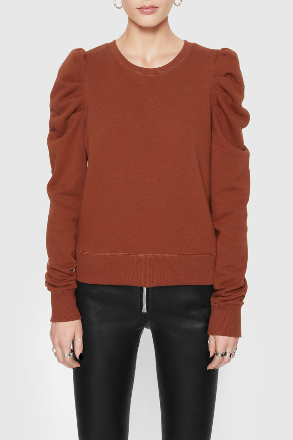 Our best-selling Janine Sweatshirt has a subtle feminine feel thanks to its low-key statement ruffled sleeves. We love wearing this casual-cool top with everything from jeans to leather skirts