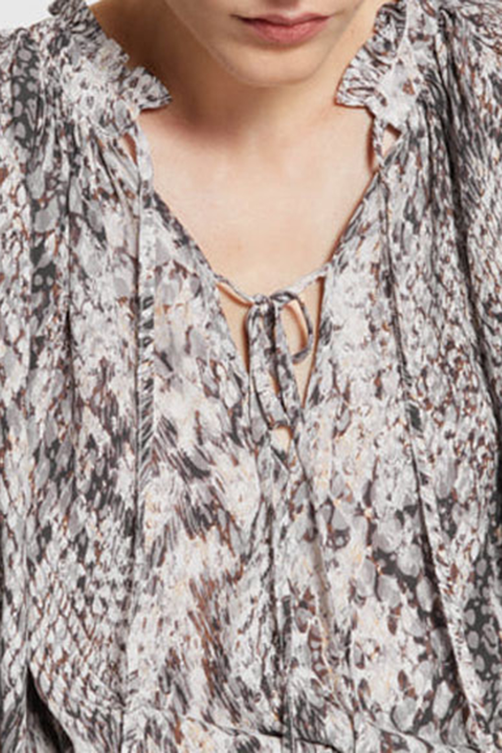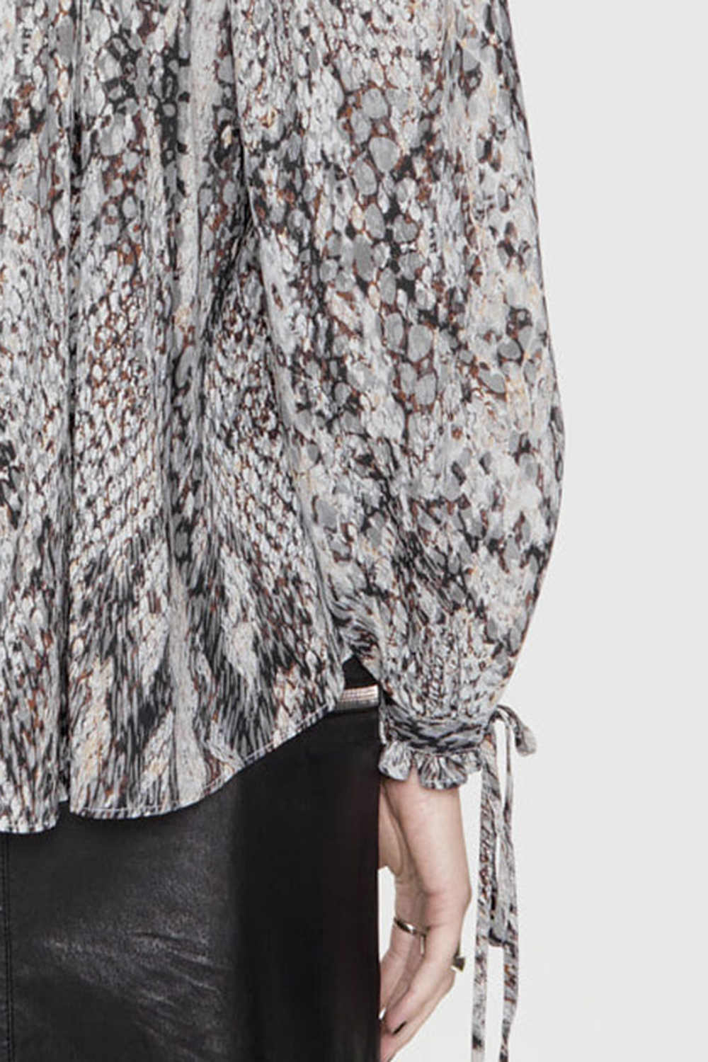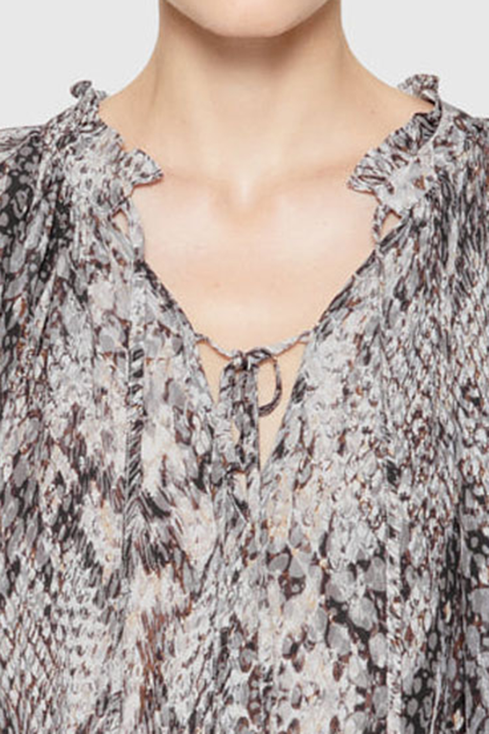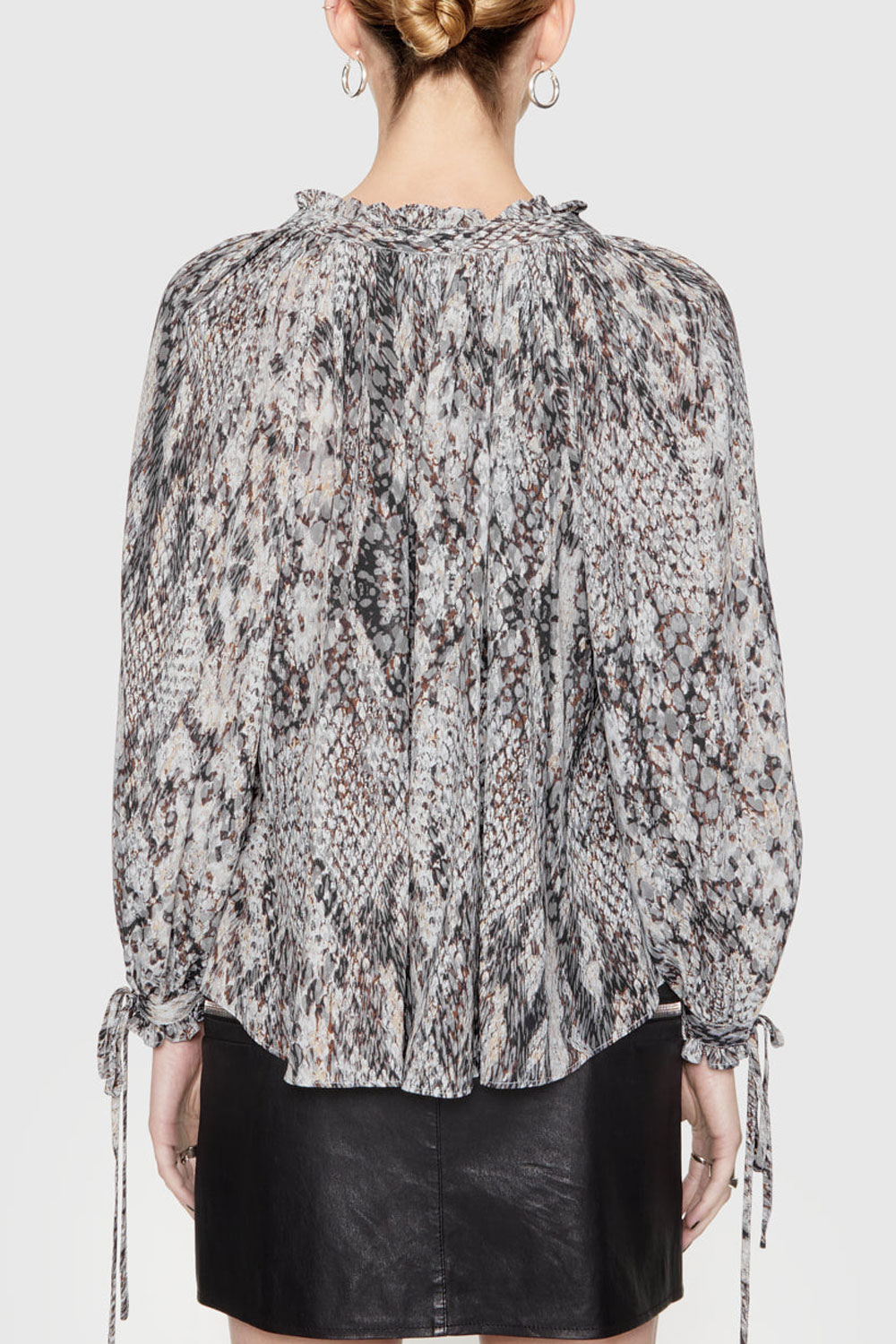 The Rosalie blouse is a paired-back piece rendered in a beautiful python print designed in a loose silhouette that elevates any ensemble.