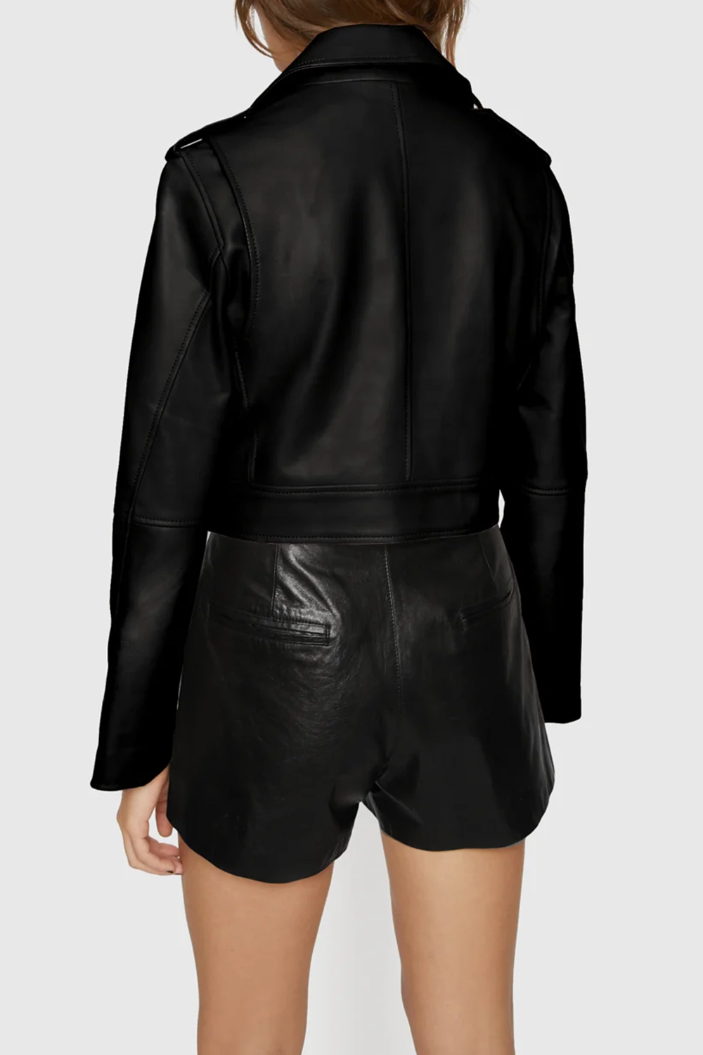 Our best-selling jacket arrives complete with all the biker-inspired finishes, including notch lapels, metal hardware and a cool belt buckle detail. This luxe layer is crafted from buttery-soft lambskin leather.